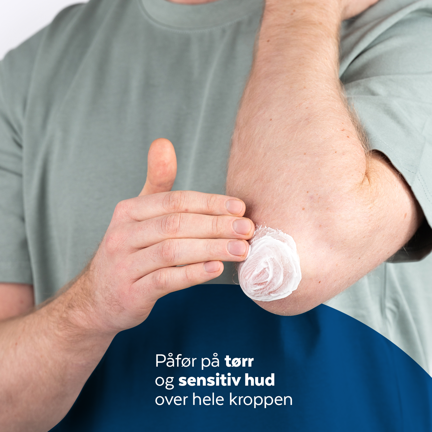 Apobase krem (blå) er en fuktighetskrem som virker mykgjørende og fuktighetsgivende ved tørr hud og lett eksem.
