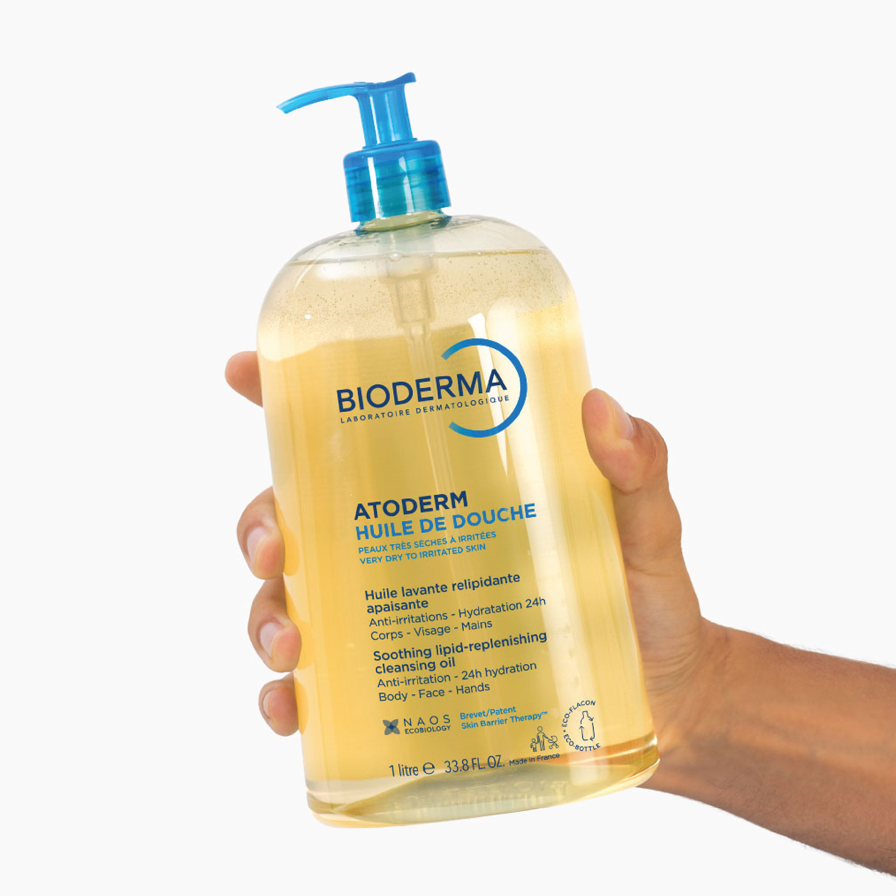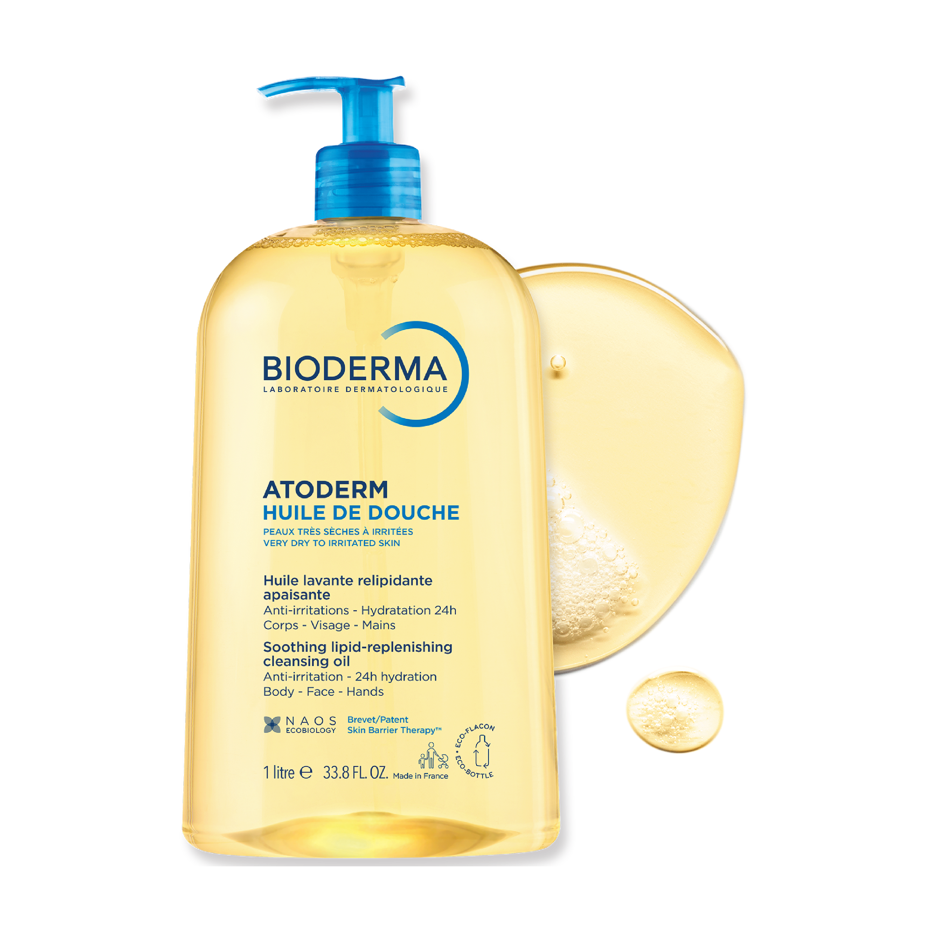Bioderma Atoderm Huile de Douche inneholder det patenterte Skin Berrier Therapy™ komplekset som bidrar til å begrense vekst av visse bakterier (Staphylococcus aureus), noe som kan forverre tørrhet i huden. Formuleringen består av 33 % lipid-gjenoppbyggende og fuktighetsgivende ingredienser som tilfører næring til huden, beroliger følelsen av stramhet og beskytter mot ytre påvirkninger. Etterlater huden hydrert i opptil 24 timer. Dusjoljen har en kremet, ikke-fet tekstur.