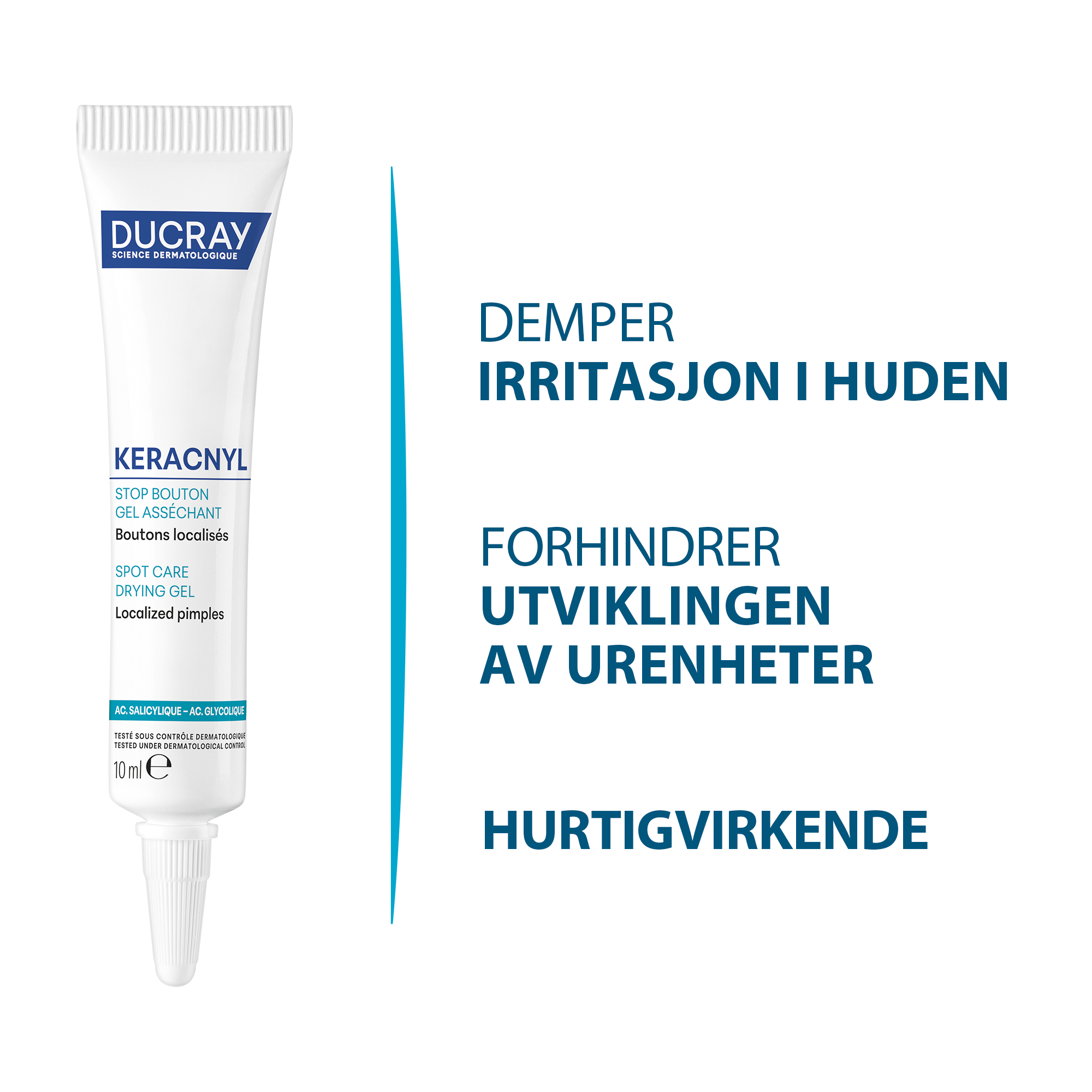 Ducray Keracnyl Spot Care Drying Gel er en punktbehandling mot akne som tørker ut og bidrar til å redusere nye urenheter.