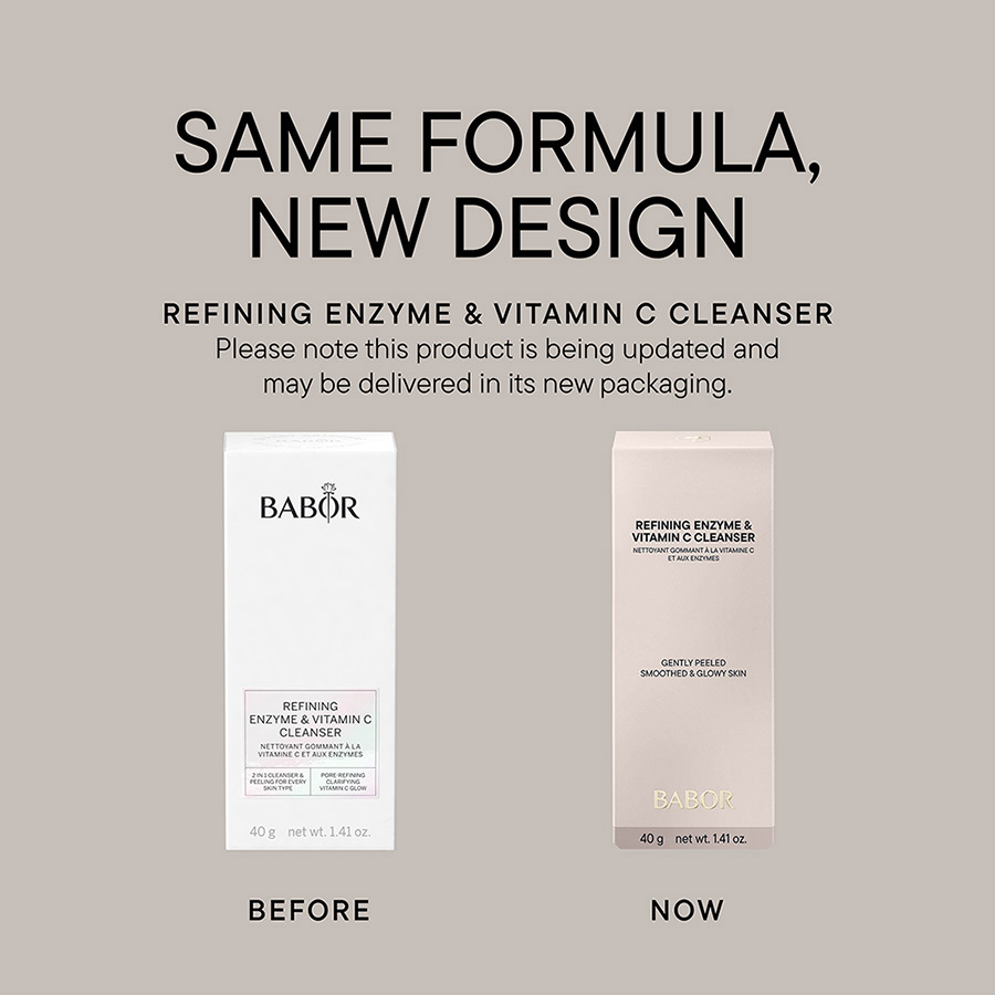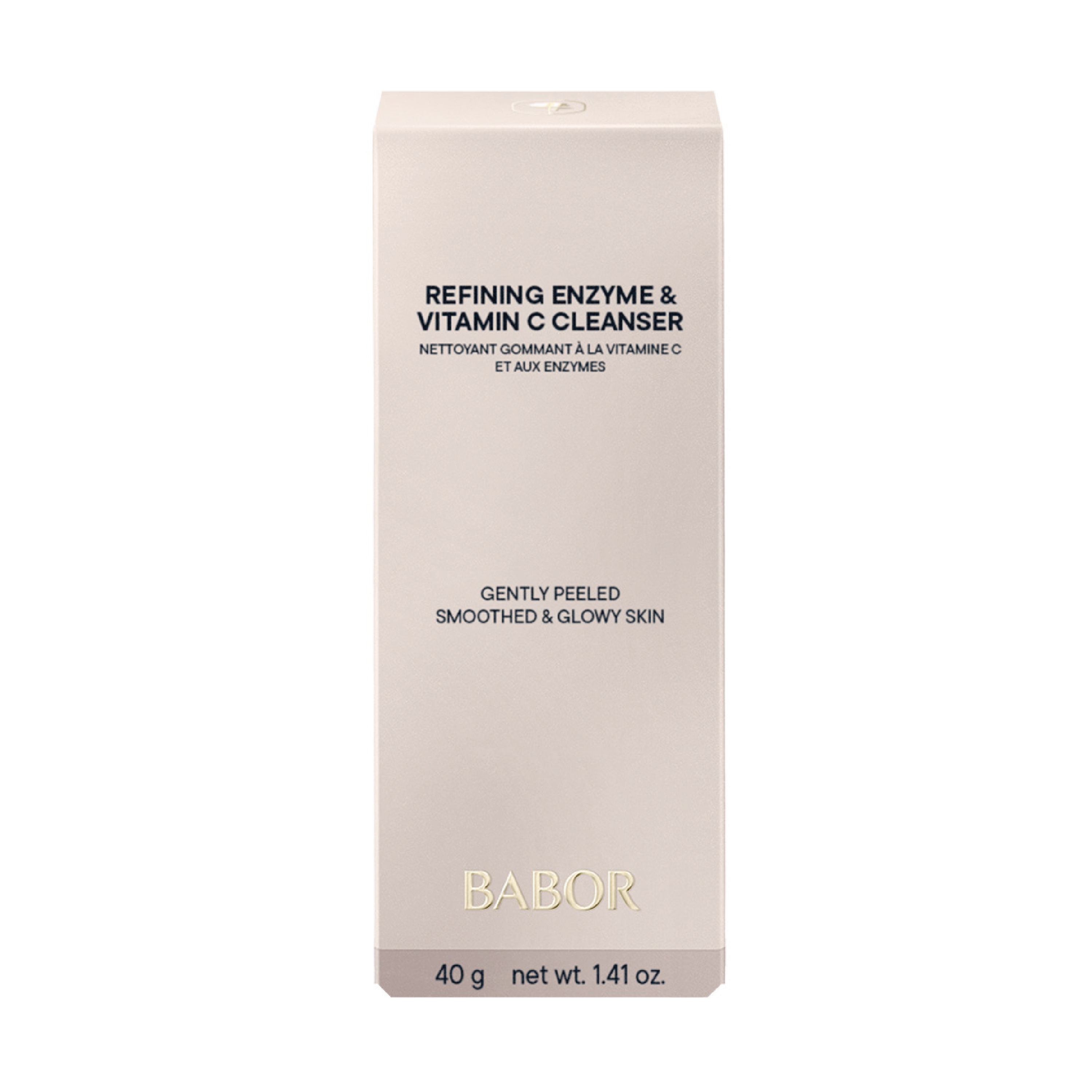 BABOR Refining Enzyme & Vitamin C Cleanser gir en intensiv rens av huden ved hjelp av sin milde peeling-effekt. Ansiktsrensen bidrar til en mykere hud med en mer naturlig glød, og forbedret hudtone.