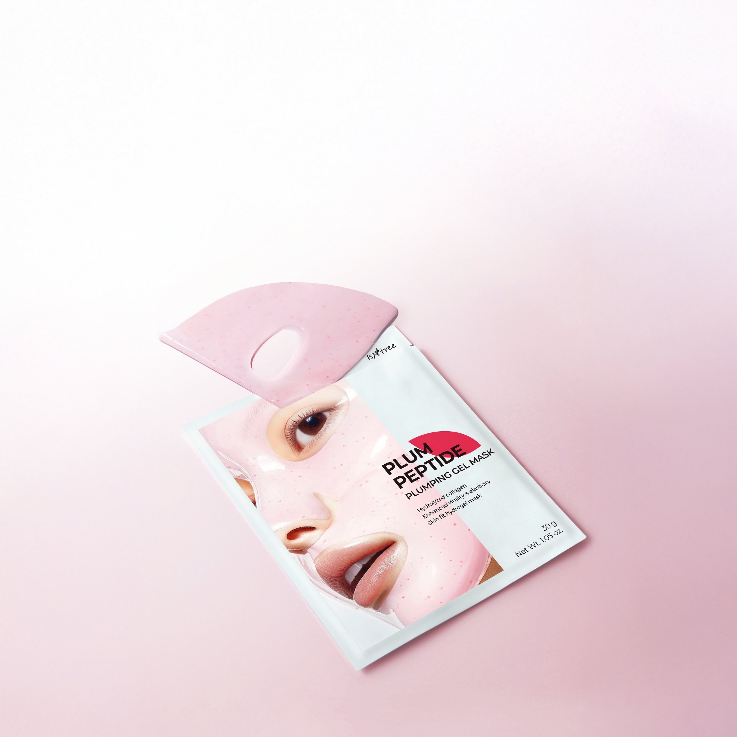 Isntree Plum Peptide Plumping Gel Mask består av en ultratynn, 1 mm stick-on hydrogel som er støpt fra en rosa ampoule og legger seg lett på huden. Ansiktsmasken er formulert med Plump Peptides, vegansk cushion-collagen og vitality-rike plum-kapsler som smelter inn i huden. Etter hvert som masken blir mer transparent, vil huden oppleves fastere og mer glødende. Hydrogelmasken bidrar til en fyldigere hud med forbedret spenst, glød og redusert synlighet av porer.