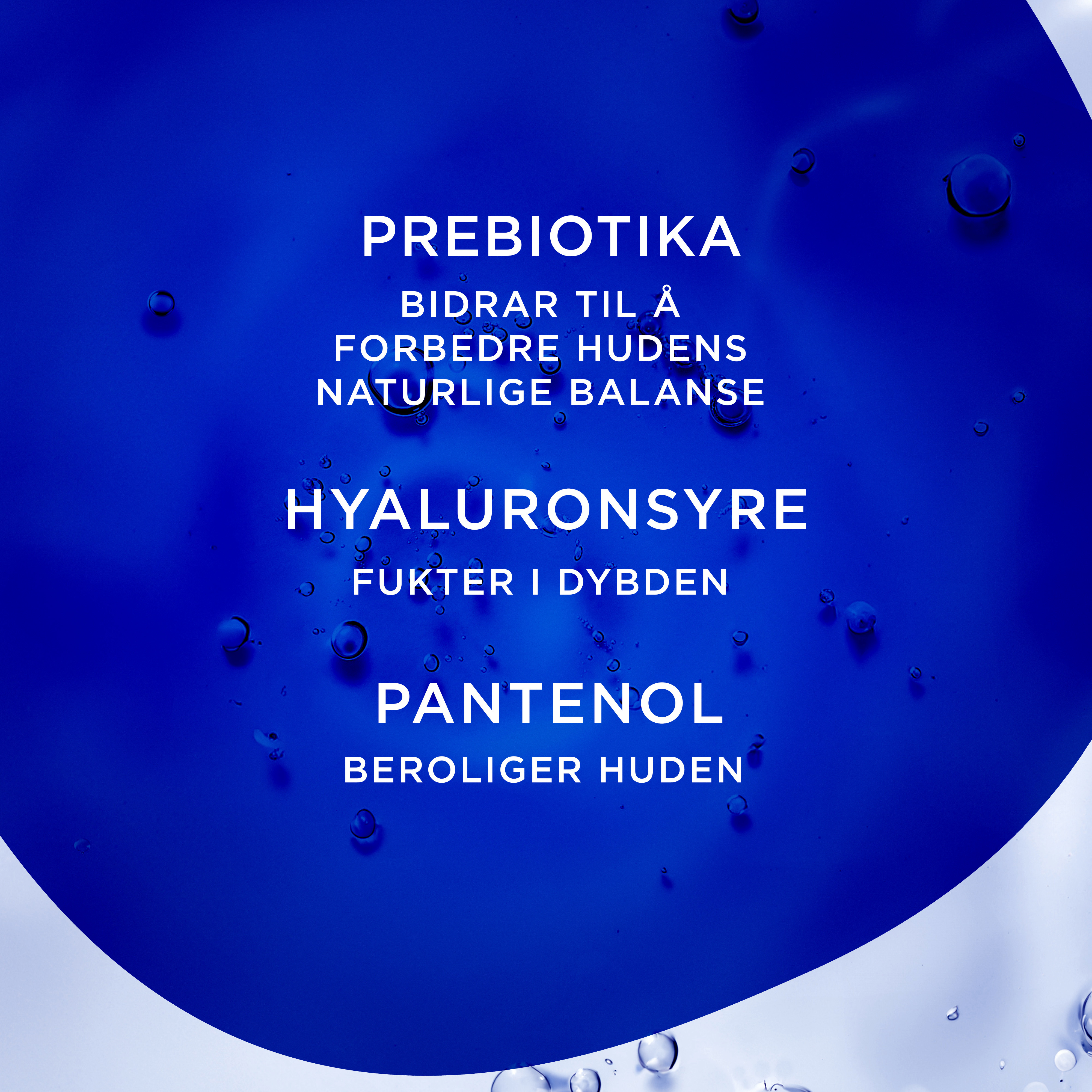 Uten parfyme. Med hyaluronsyre. Med prebiotika. Rensegel.