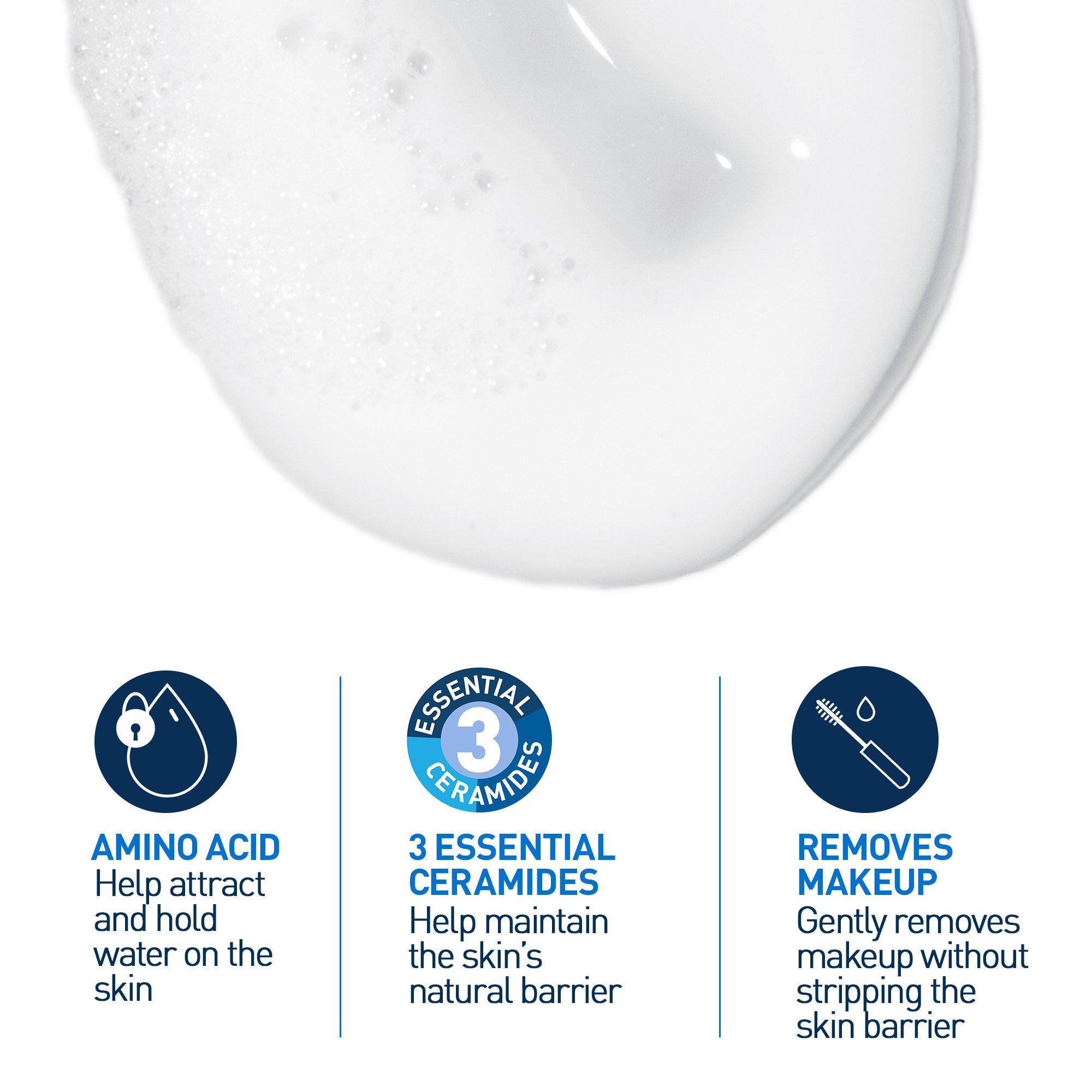 CeraVe Hydrating Cream-To-Foam Cleanser inneholder tre essensielle ceramider, hyaluronsyre og aminosyrer som effektivt fjerner smuss og sminke uten å forstyrre hudbarrieren eller hudens pH-balanse. Huden vil umiddelbart føles ren, myk og fuktet. Ansiktsrensen tetter ikke porene (ikke-komedogen).
