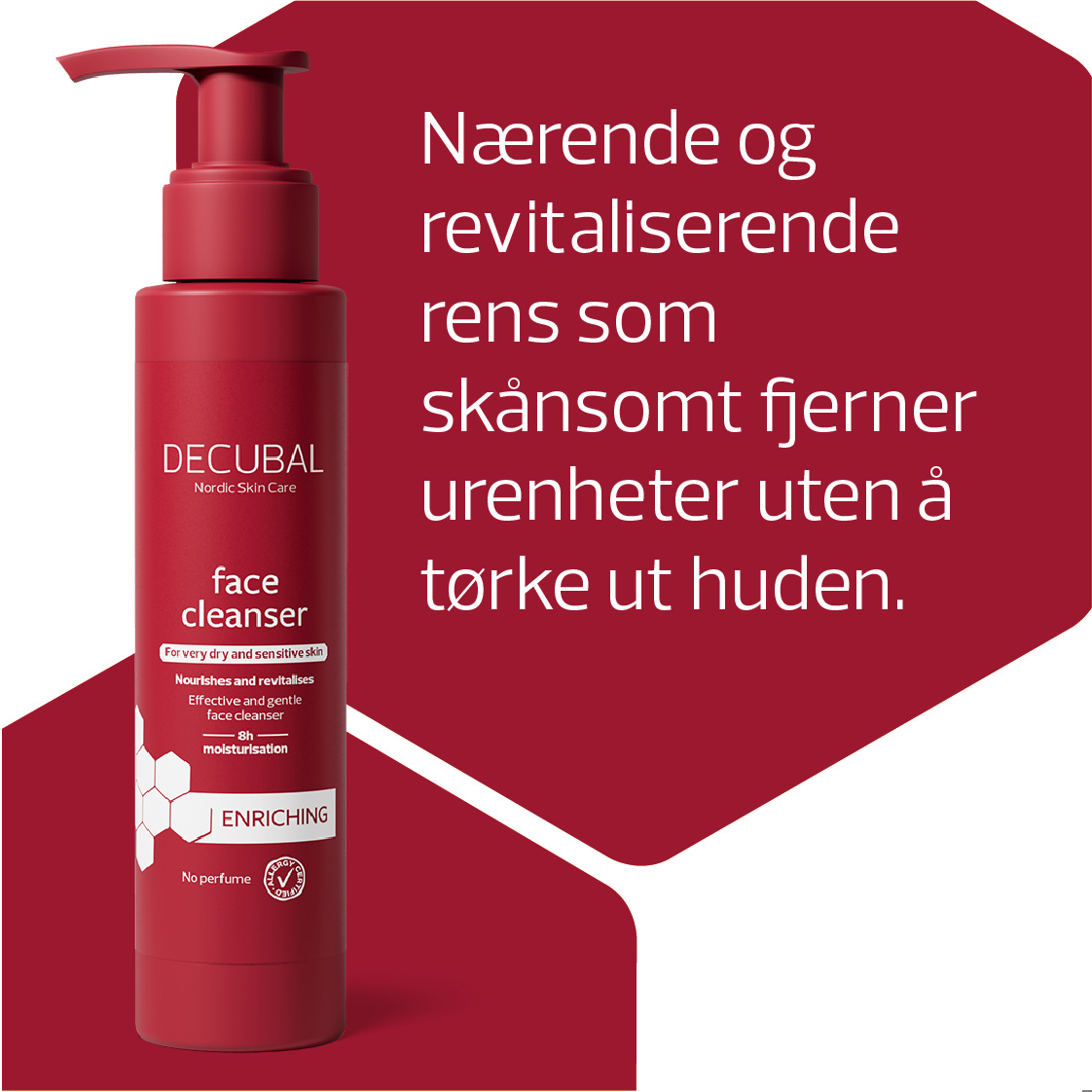 Decubal Enriching Face Cleanser er en ekstra nærende ansiktsrens som skånsomt renser huden for smuss og urenheter uten å tørke den ut.