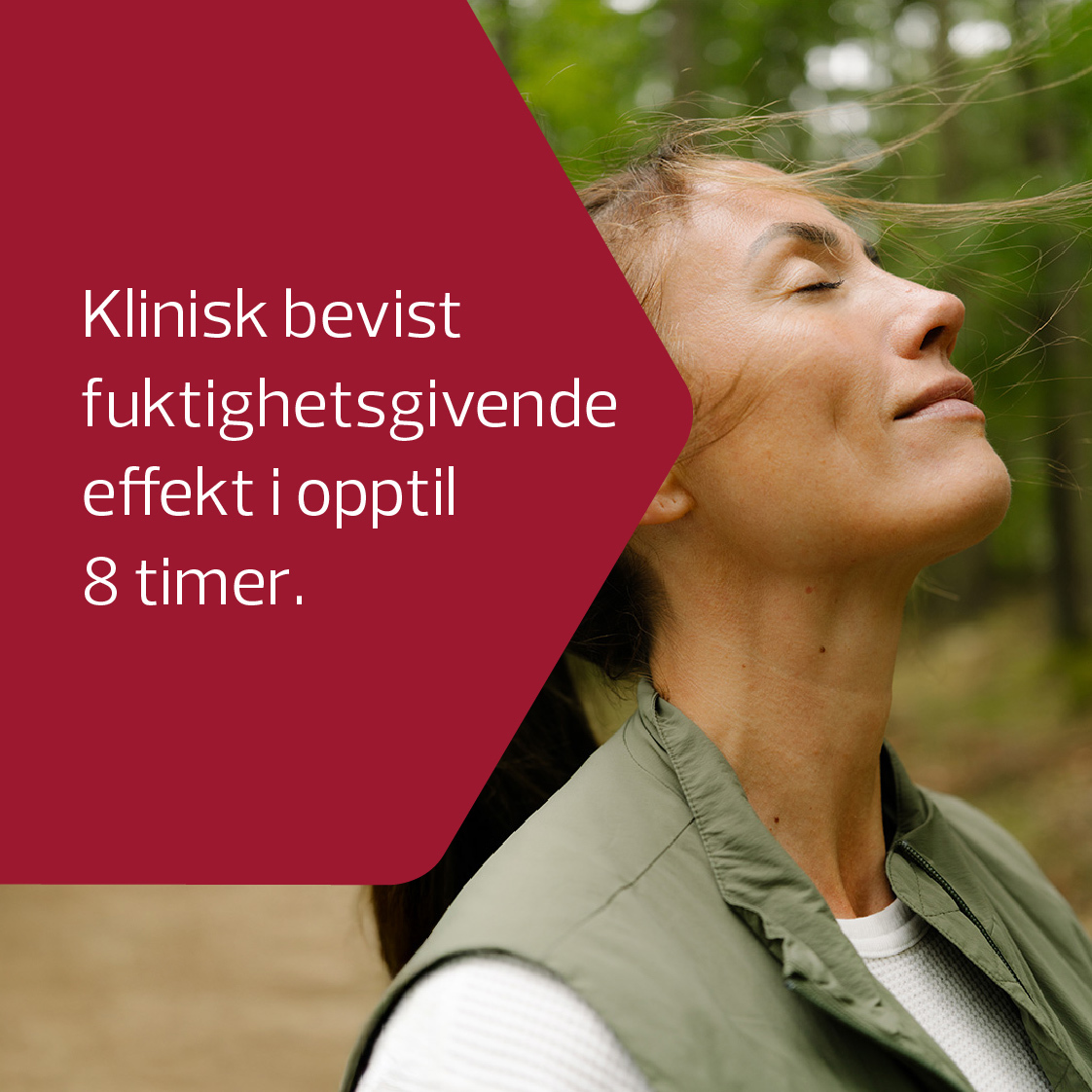 - Gir en fuktighetsgivende effekt i opptil 8 timer.