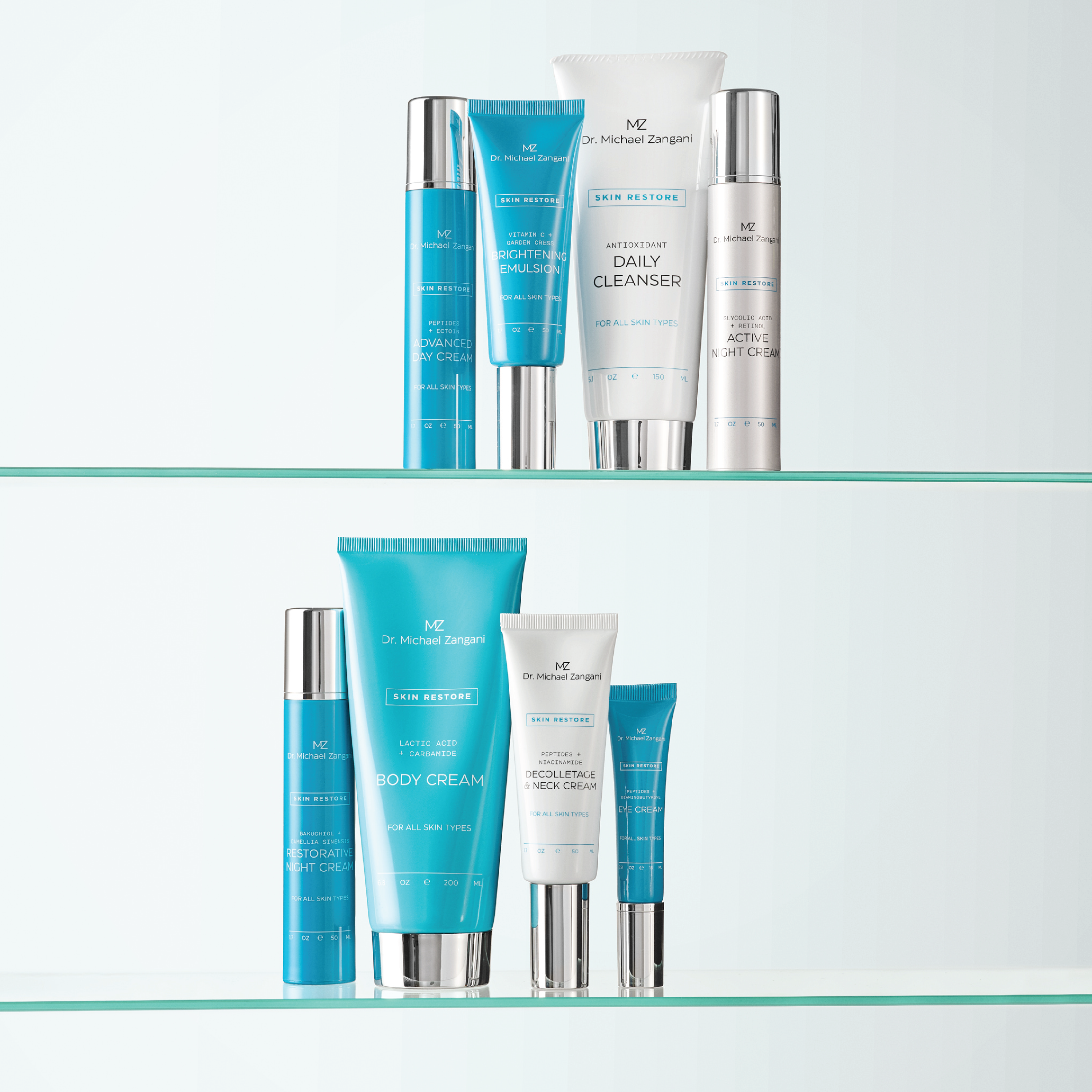 Dr. Michael Zangani Skin Restore Antioxidant Daily Cleanser fjerner effektivt smuss og sminke fra huden uten å tørke den ut eller virke irriterende. Ansiktsrensen er rik på antioksidanter fra blant annet lakrisrot, grønn te og granateple. Rensen har en lysnende effekt og eksfolierer huden mildt for å fjerne døde hudceller og fremme hudens cellefornyelse.