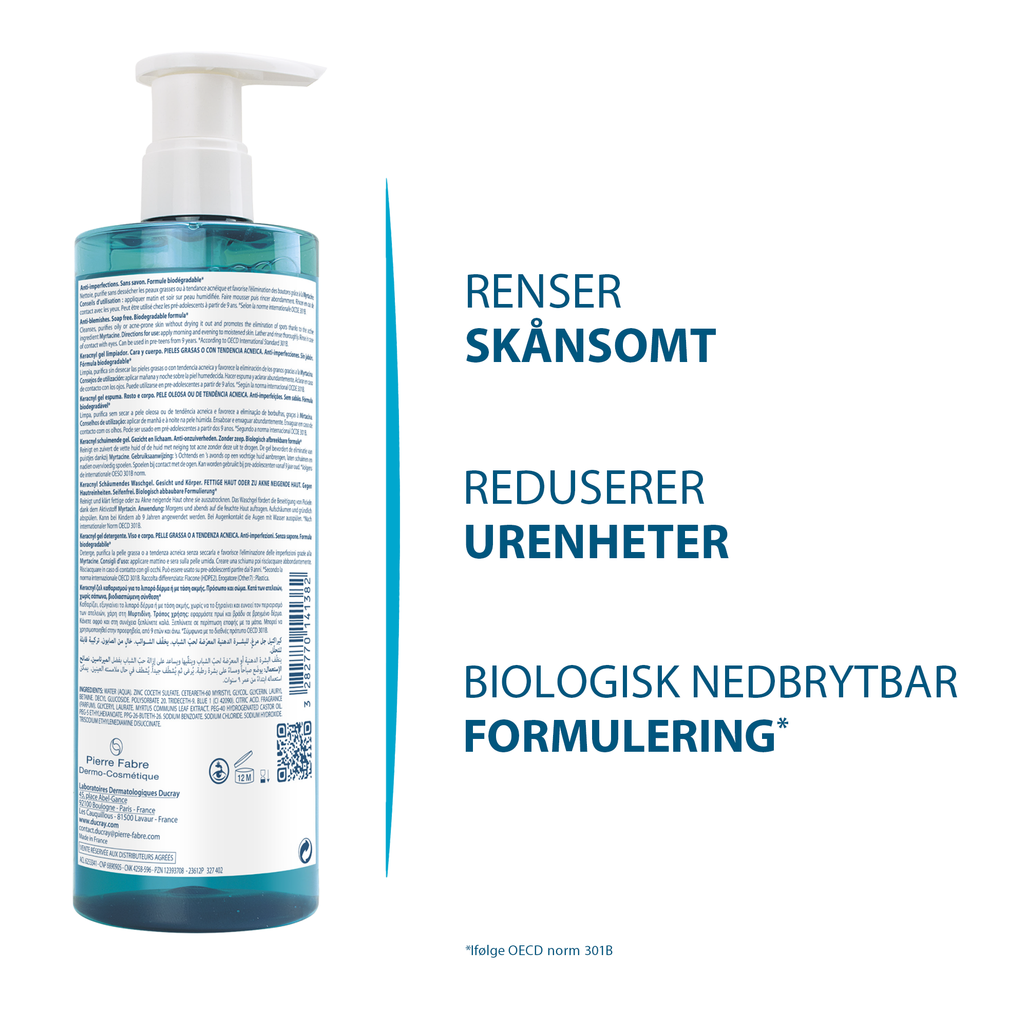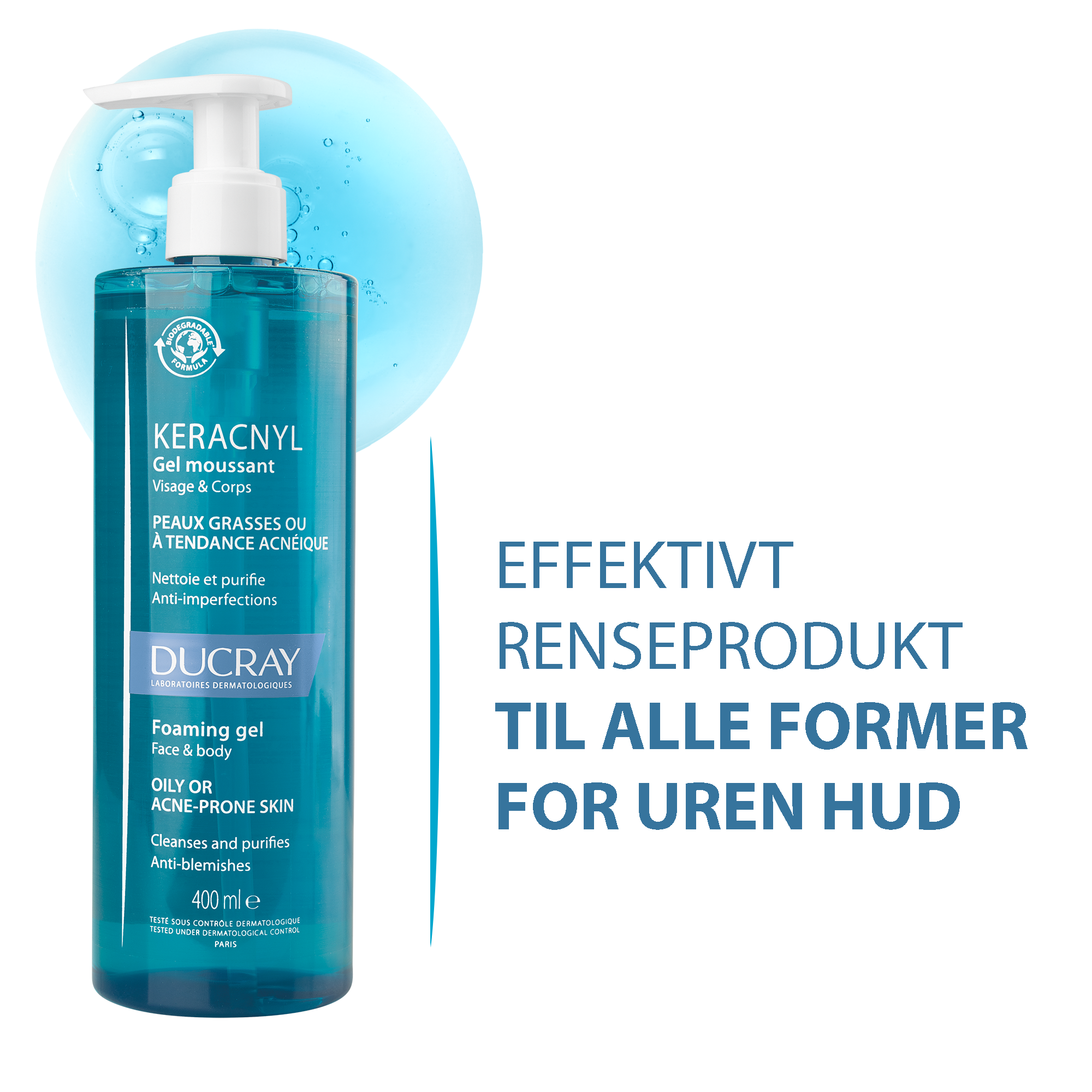 Ducray Keracnyl Foaming Gel er en effektiv og skummende rensegel som er spesielt utviklet for fet og uren hud.