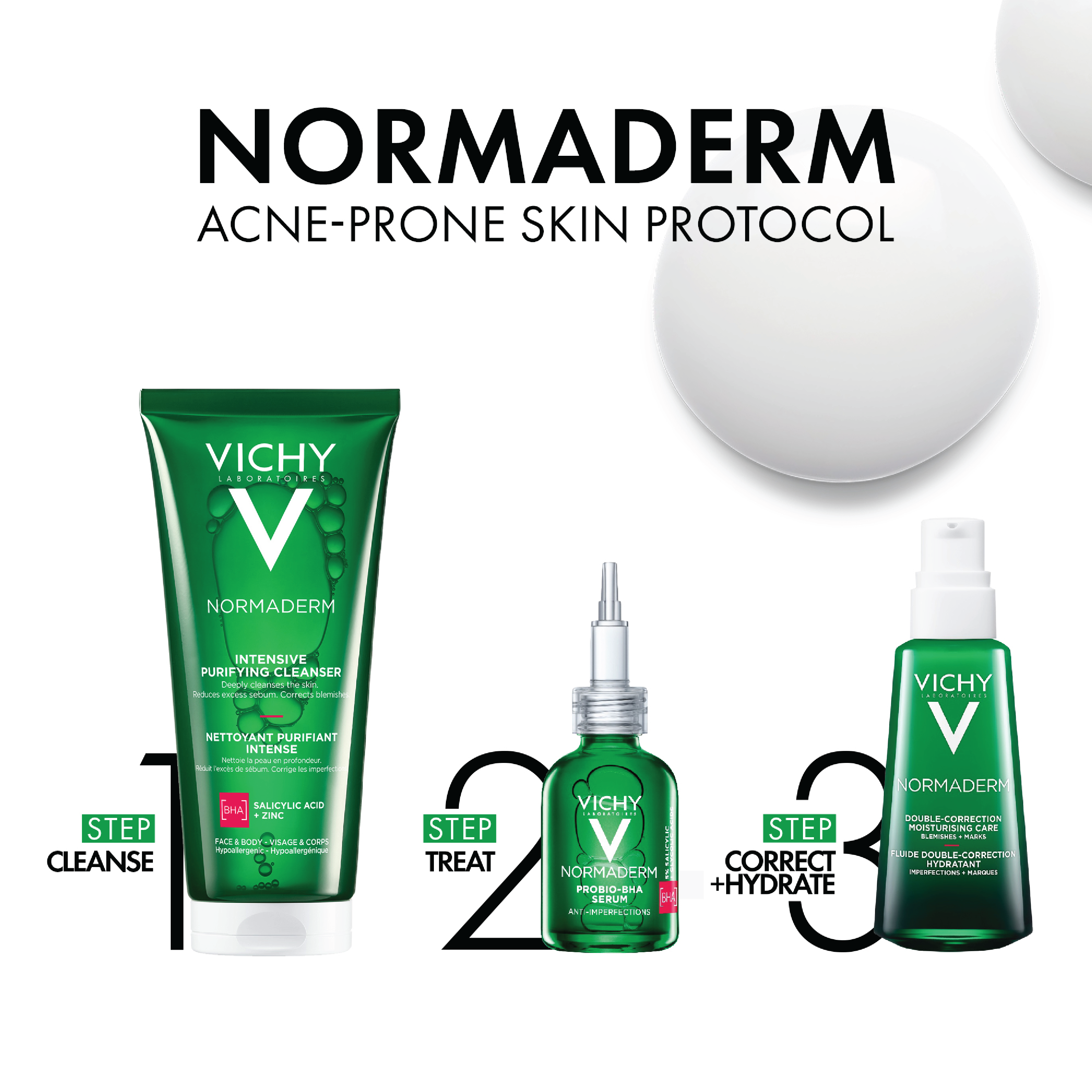 Vichy Normaderm Intensive Purifying Cleanser er en ansiktsrens med innhold av salisylsyre som bidrar til en effektiv og lett eksfolierende rens av huden.