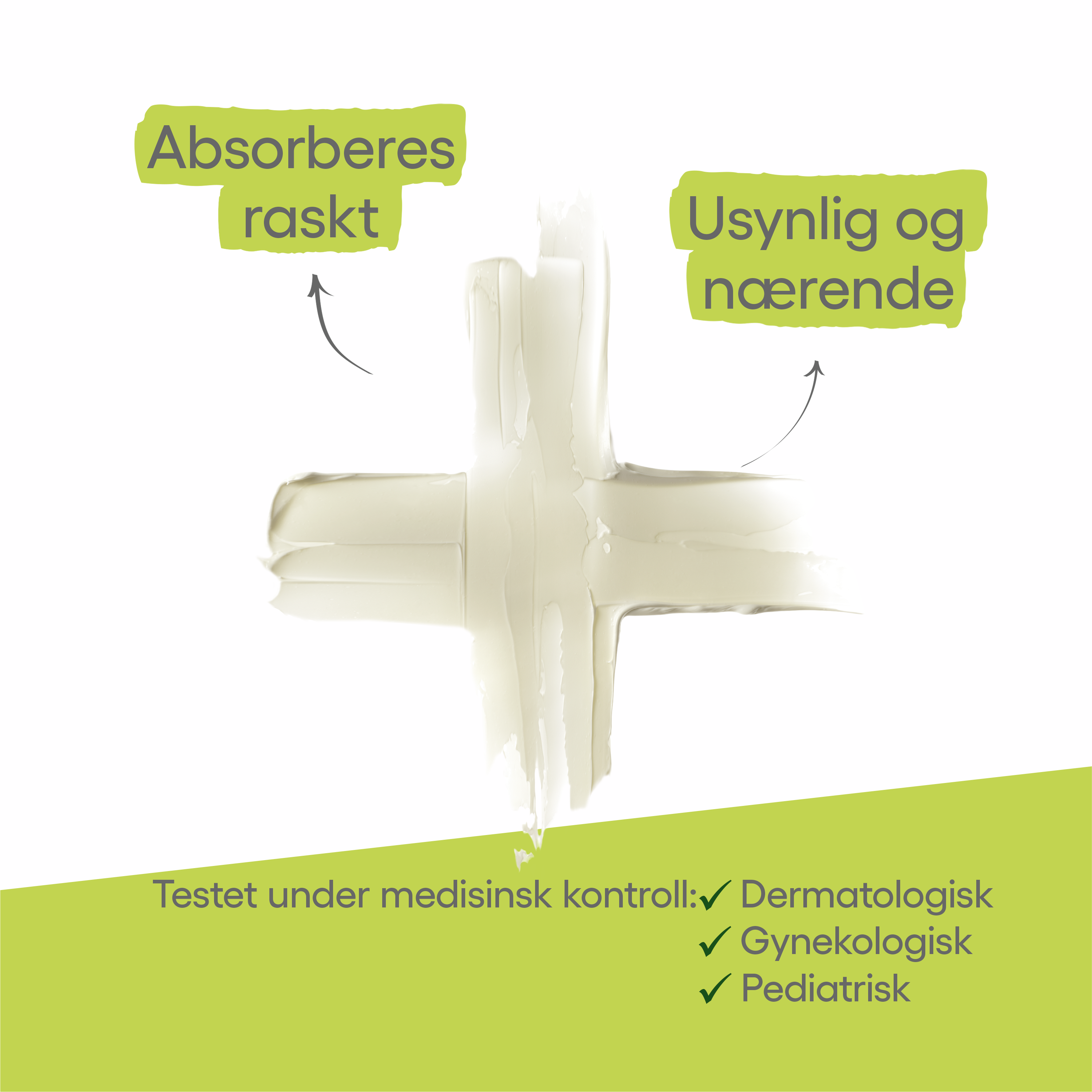 Uten parfyme. Vannresistent. Med sinkoksid. Inneholder havre.