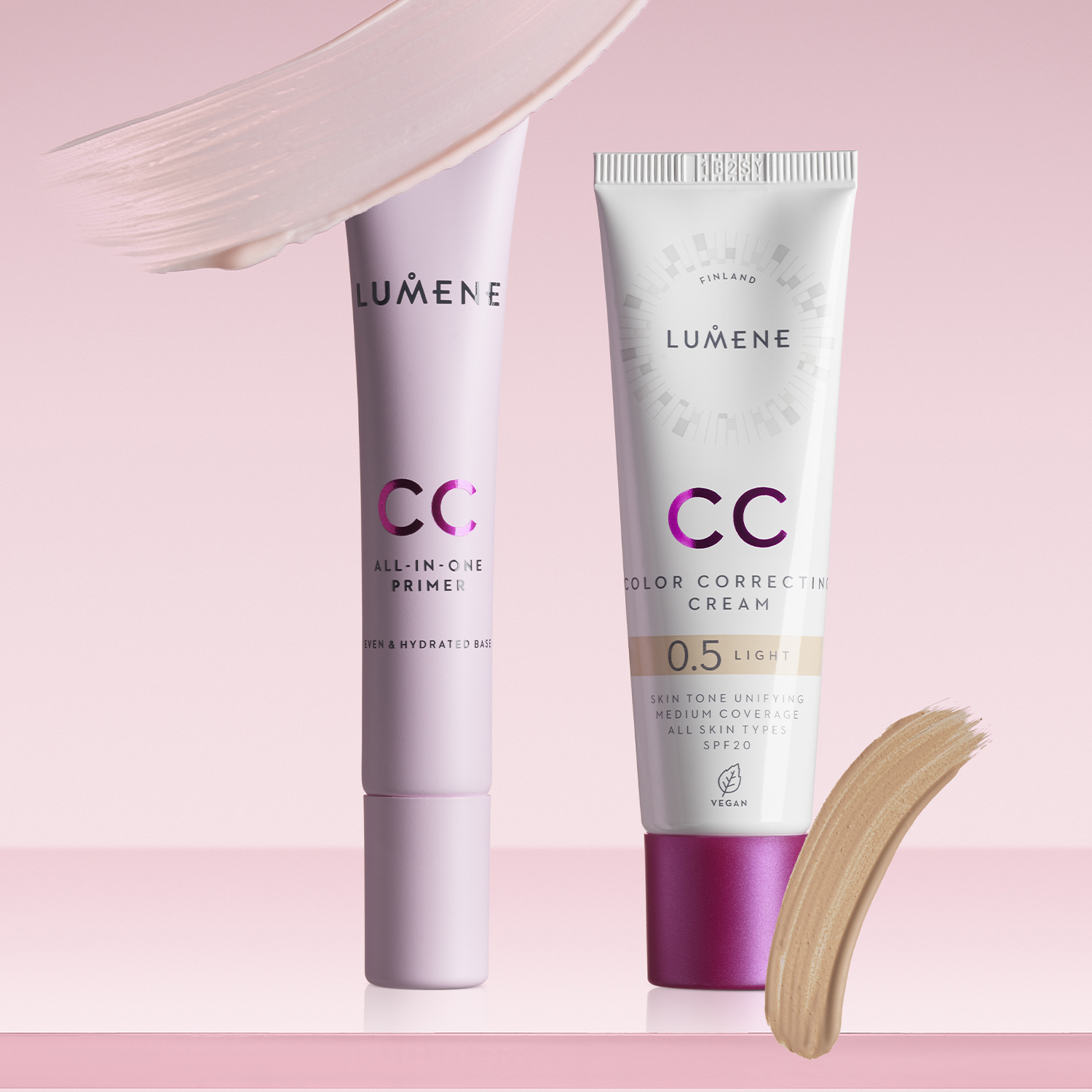 Lumene CC Color Correcting Primer har en fløyelsmyk og lett tekstur. Primeren er beriket med fuktighetsgivende hyaluronsyre og tyttebær som jevner ut hudtonen, og er perfekt som base for makeup på lange dager.