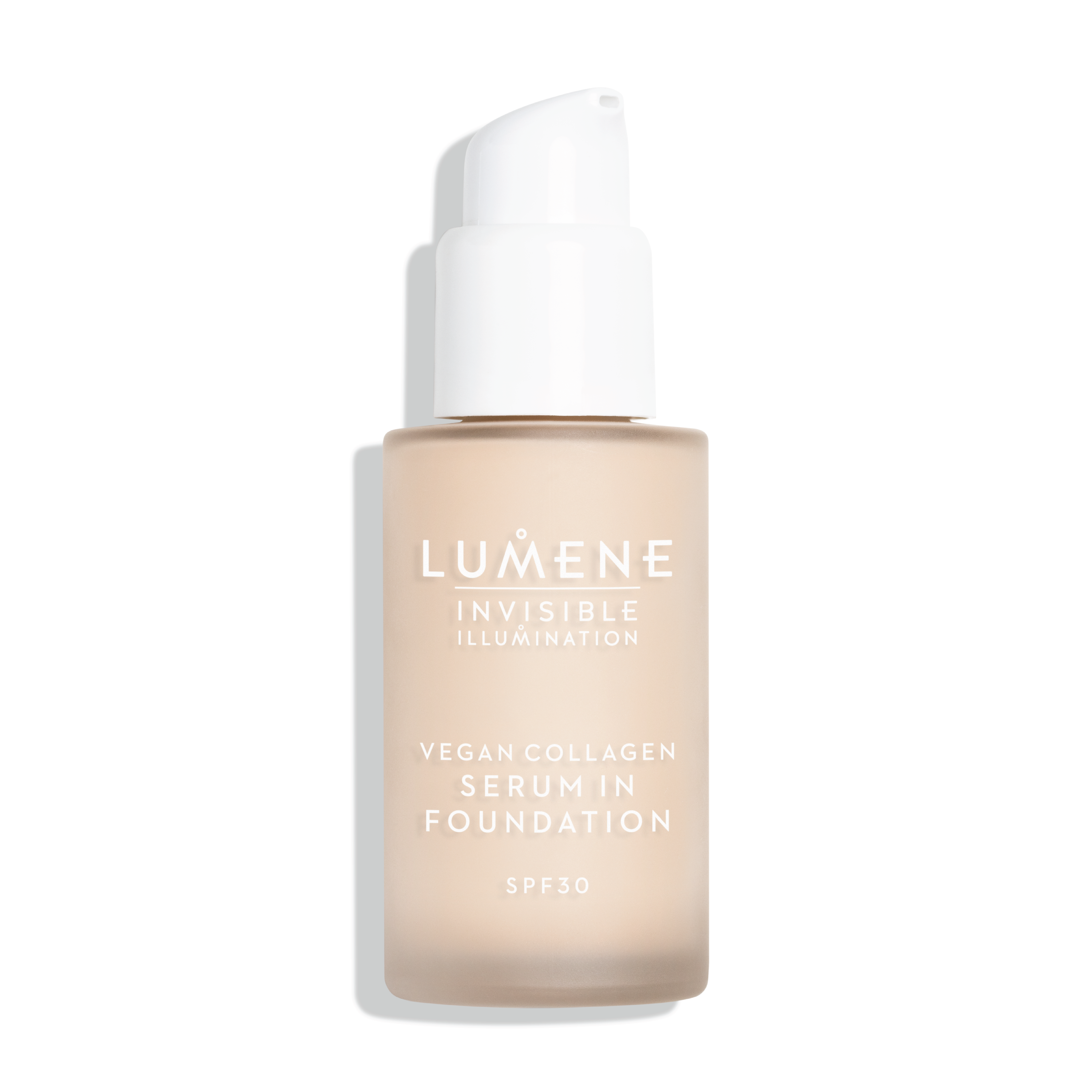 Lumene Invisible Illumination Serum In Foundation SPF30 kombinerer hudpleie og makeup i én lett formel. Den pleiende formelen inneholder vegansk kollagen, fuktighetsgivende trippel hyaluronsyre og pleiende nordiske ingredienser som bidrar til å glatte ut og fukte huden hver gang du bruker den. Inneholder i tillegg UVA- og UVB-filter med solfaktor 30.