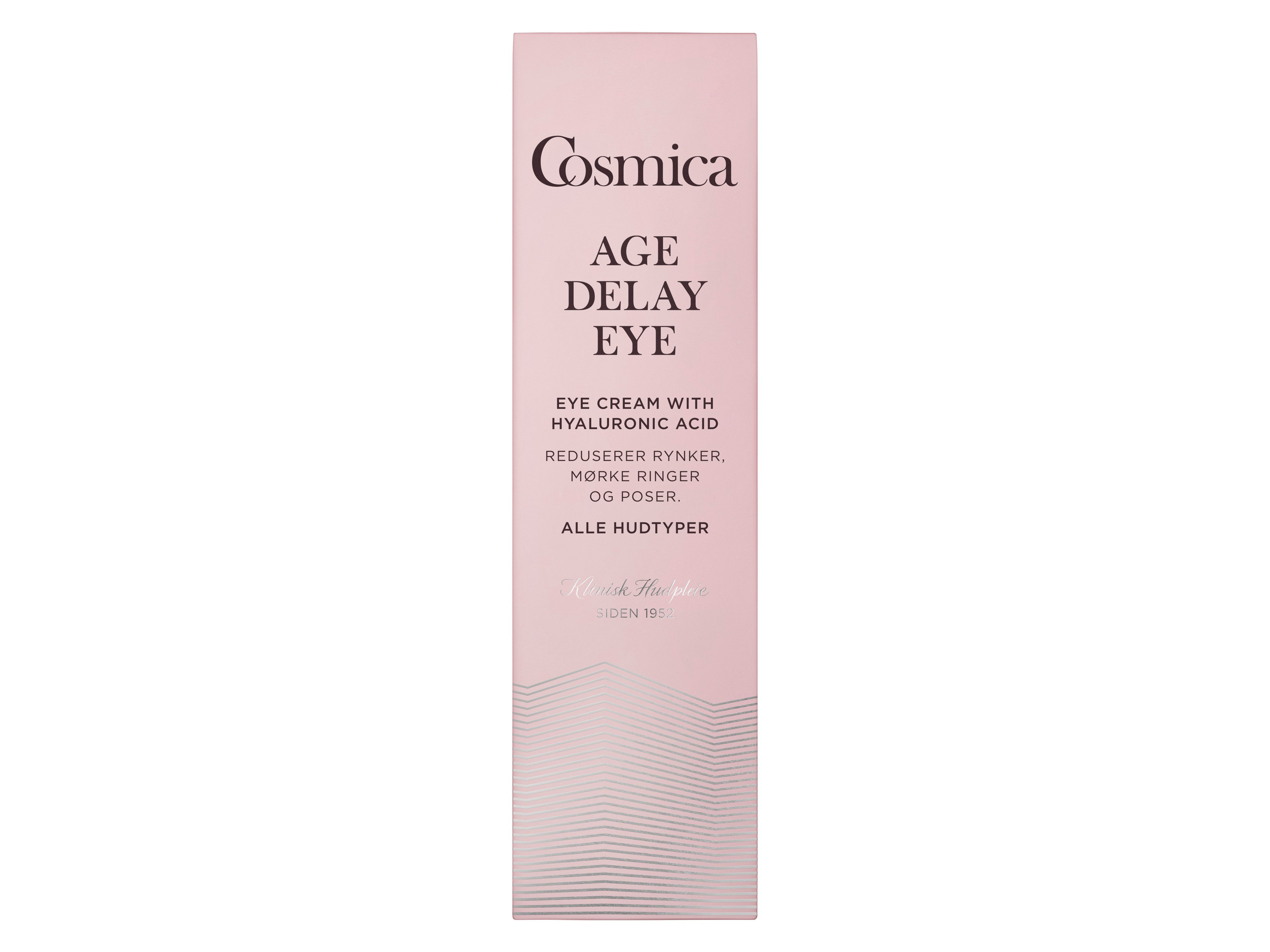 Cosmica Age Delay Eye Cream er en anti-age øyekrem med hyaluronsyre, som glatter ut huden og reduserer poser under øynene.