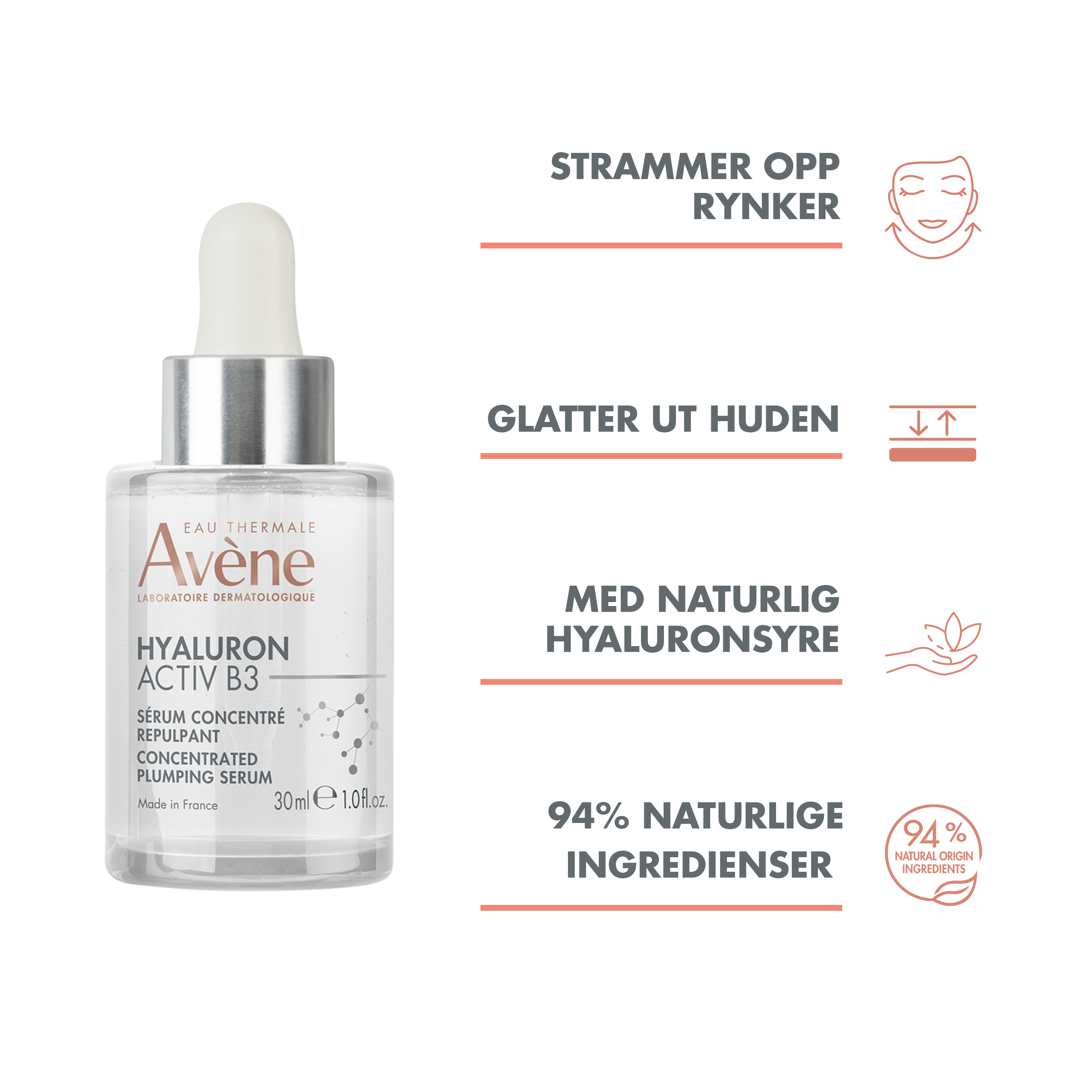Avène Hyaluron Activ B3 Serum er et lett ansiktsserum som gir fukt, fylde og bidrar til jevnere hud.