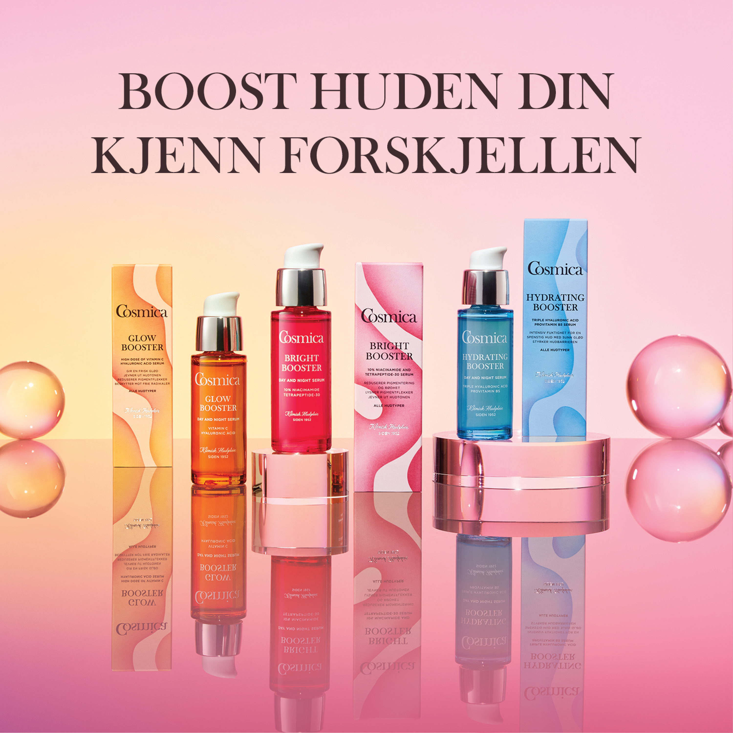 Cosmica Bright Booster er et multivirkende serum som bidrar til å fukte huden i dybden, forbedrer hudens naturlige glød og styrker hudbarrieren.