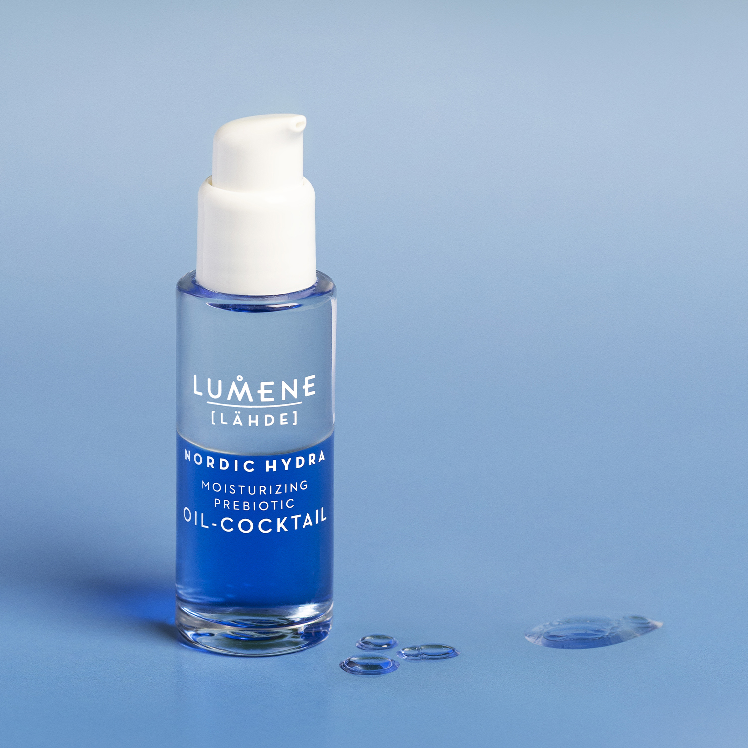 Lumene Nordic Hydra Moisturizing Prebiotic Oil-Cocktail er et oljeserum med prebiotika som bidrar til å tilføre fukt og pleie til huden.