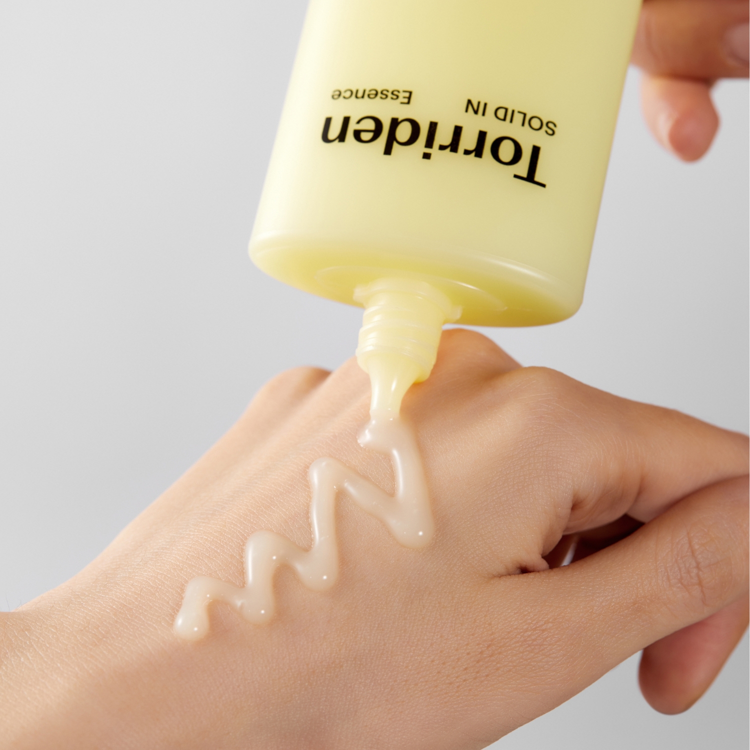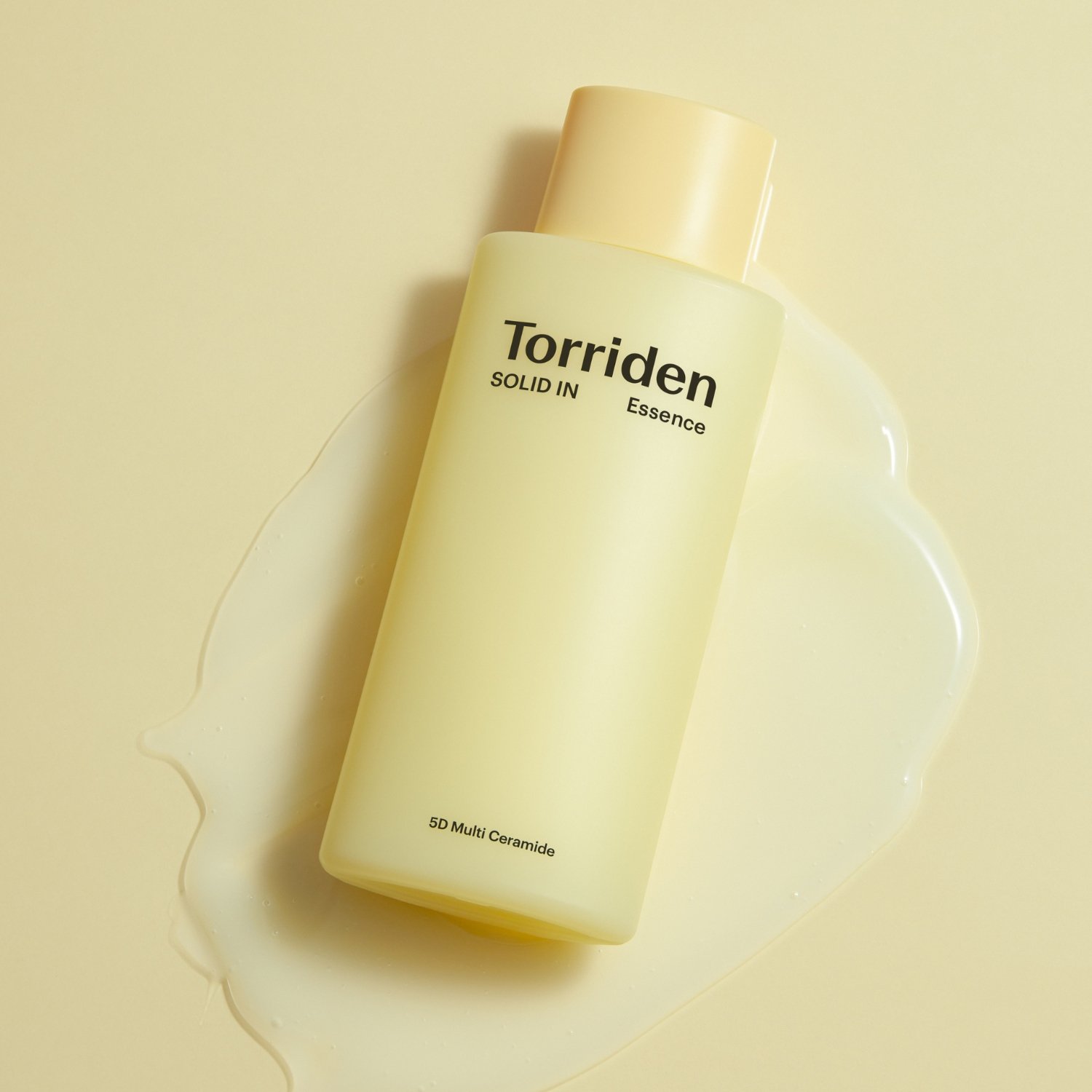 Torriden SOLID IN Essence inneholder fem ulike typer ceramider og d-panthenol som bidrar til å gjenoppbygge en svekket hudbarriere. Den serum-lignende tykke konsistensen absorberes raskt og smelter inn i huden uten å etterlate en klissete følelse.
