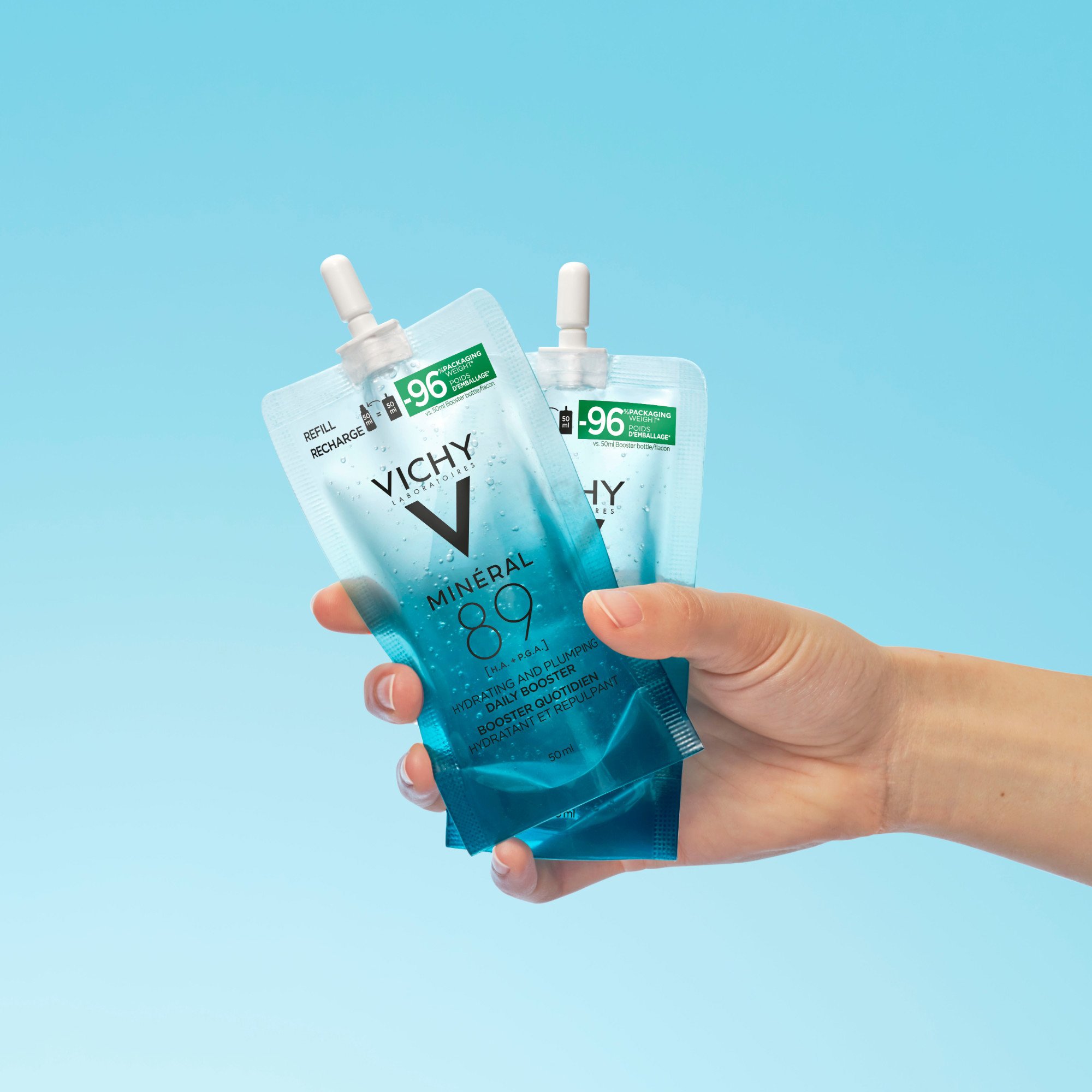 Vichy Minéral 89 Booster Refill er et fuktighetsgivende serum som gir huden et daglig fuktboost og bidrar til en frisk og hydrert glød.