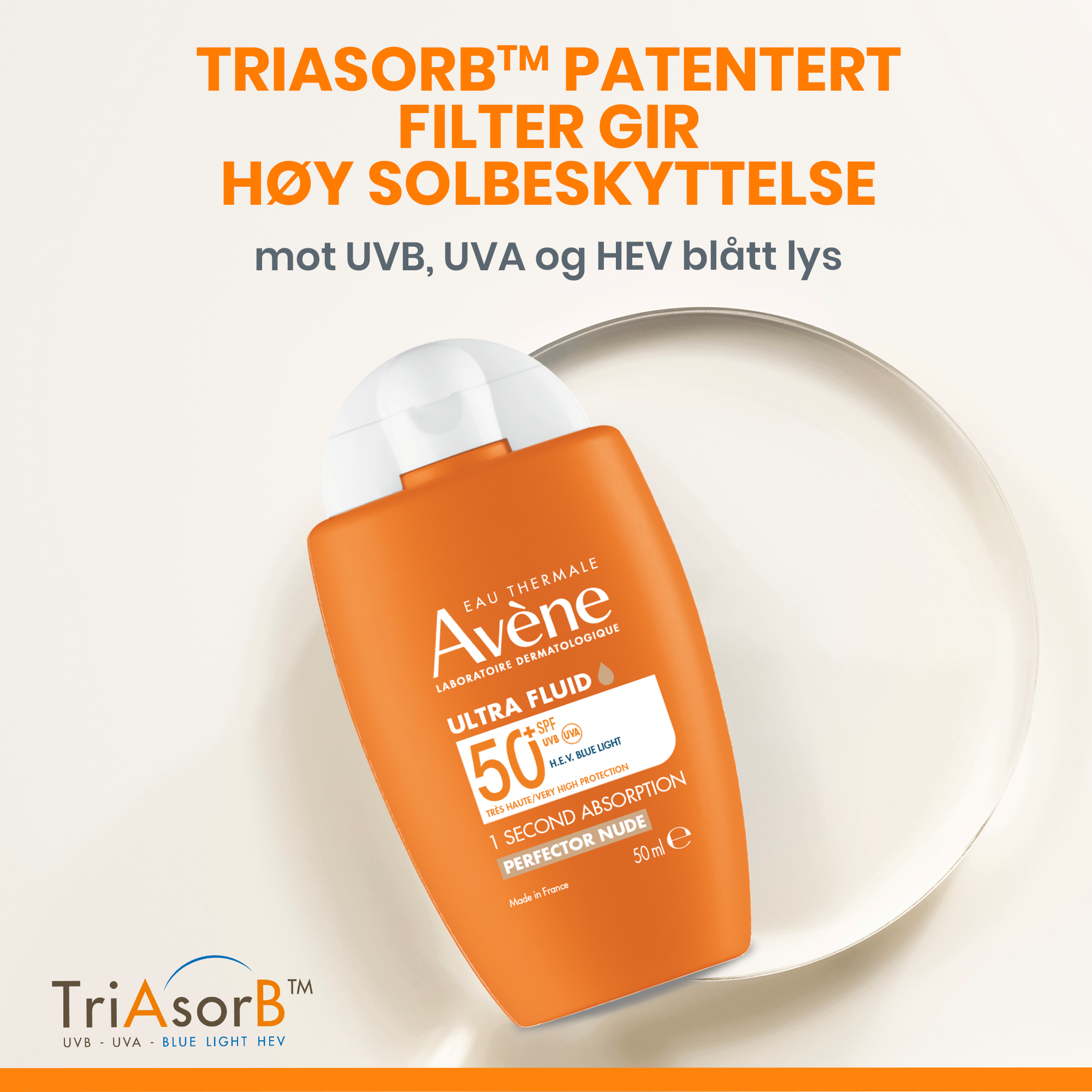 - Ultralett, farget ansiktssolkrem med SPF50+.