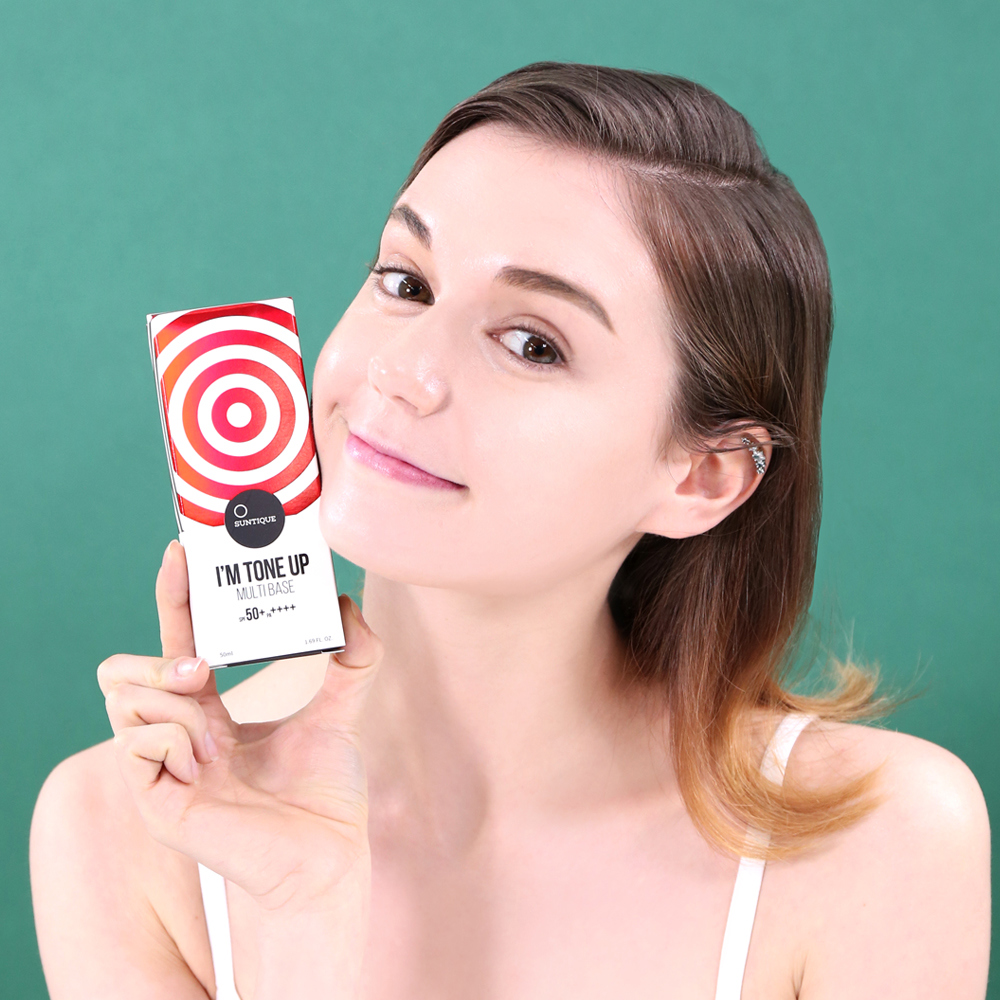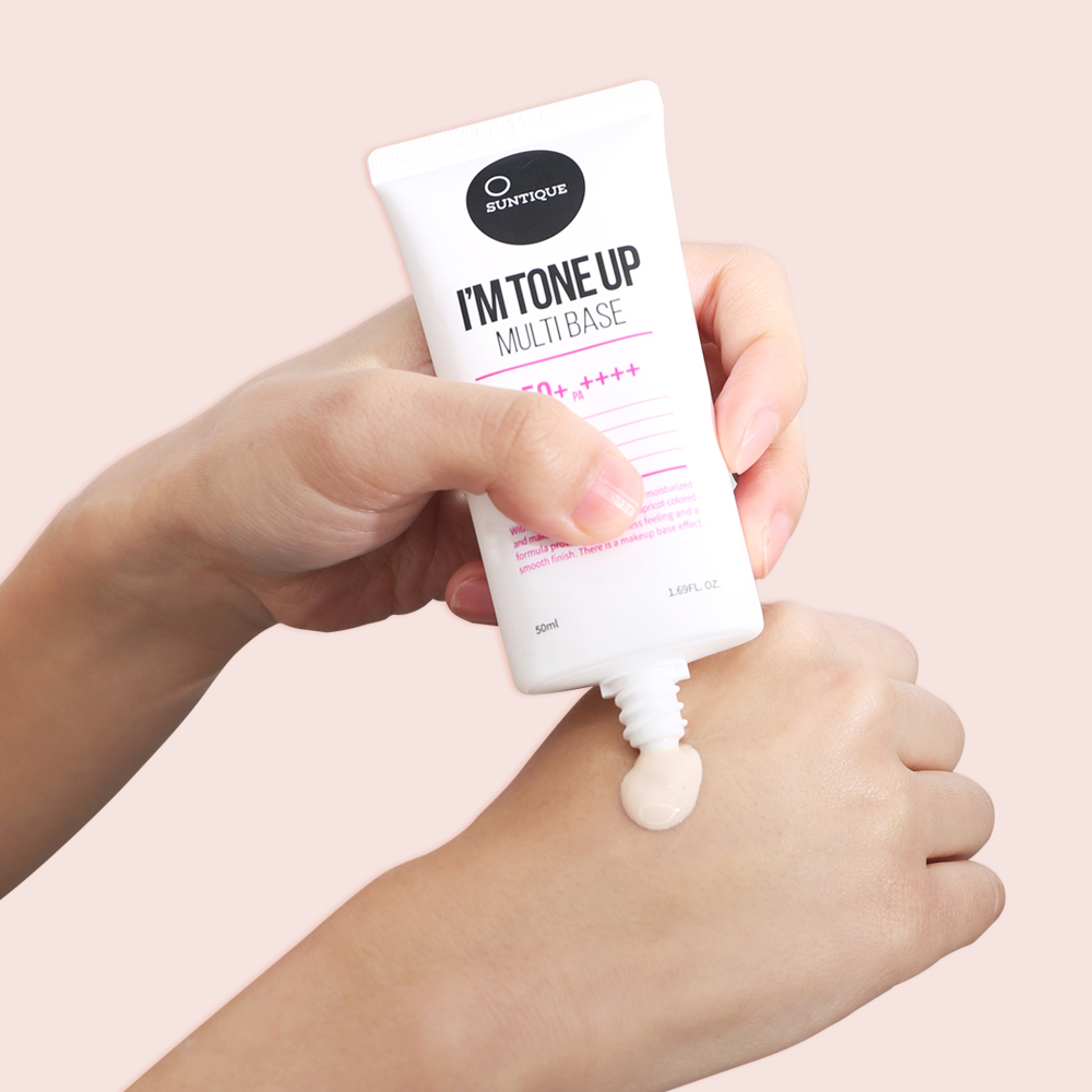Suntique I’m Tone Up Multi Base SPF50+ PA++++ er en ansiktssolkrem som jevner ut hudtonen og gir høy UV-beskyttelse.