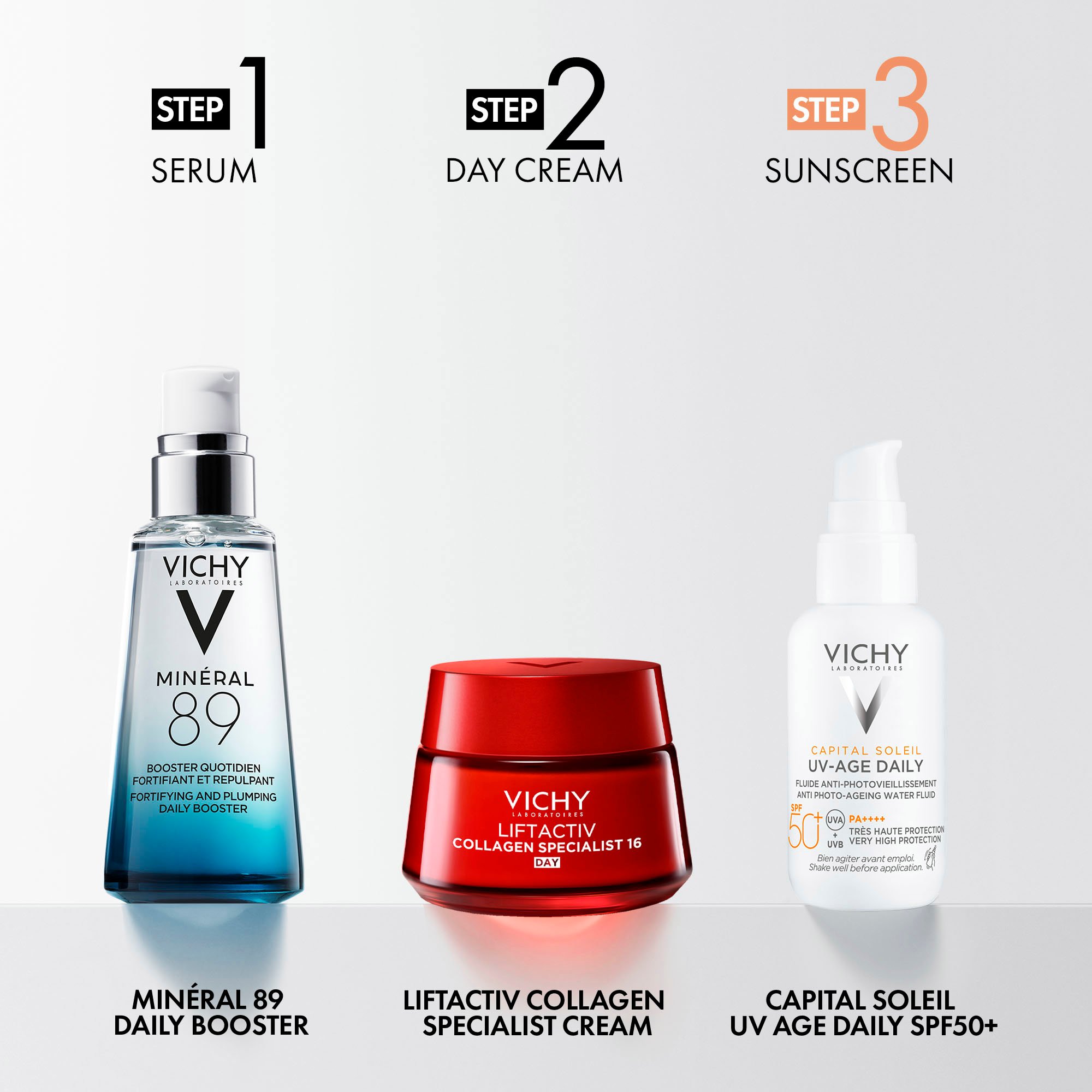 Vichy Capital Soleil UV-Age Daily SPF50+ er en ultralett ansiktssolkrem som gir svært høy, bredspektret beskyttelse mot UVA- og UVB-stråler. Formelen kombinerer niacinamid, peptider og probiotiske fraksjoner (Vitreoscilla ferment) med Vichys termalske kildevann og vitamin E. Sammen bidrar dette til å forebygge rynker, ujevn pigmentering og oksidativt stress forårsaket av sol og forurensning. Den tynne, lettflytende konsistensen trekker raskt inn, gir en usynlig finish og føles ikke klissete i bruk. Solkremen er vann- og svetteresistent og kan påføres i ansikt og på hals, også forsiktig rundt øyepartiet. Produktet er testet under oftalmologisk kontroll og utviklet for å være hypoallergen. Med parfyme.