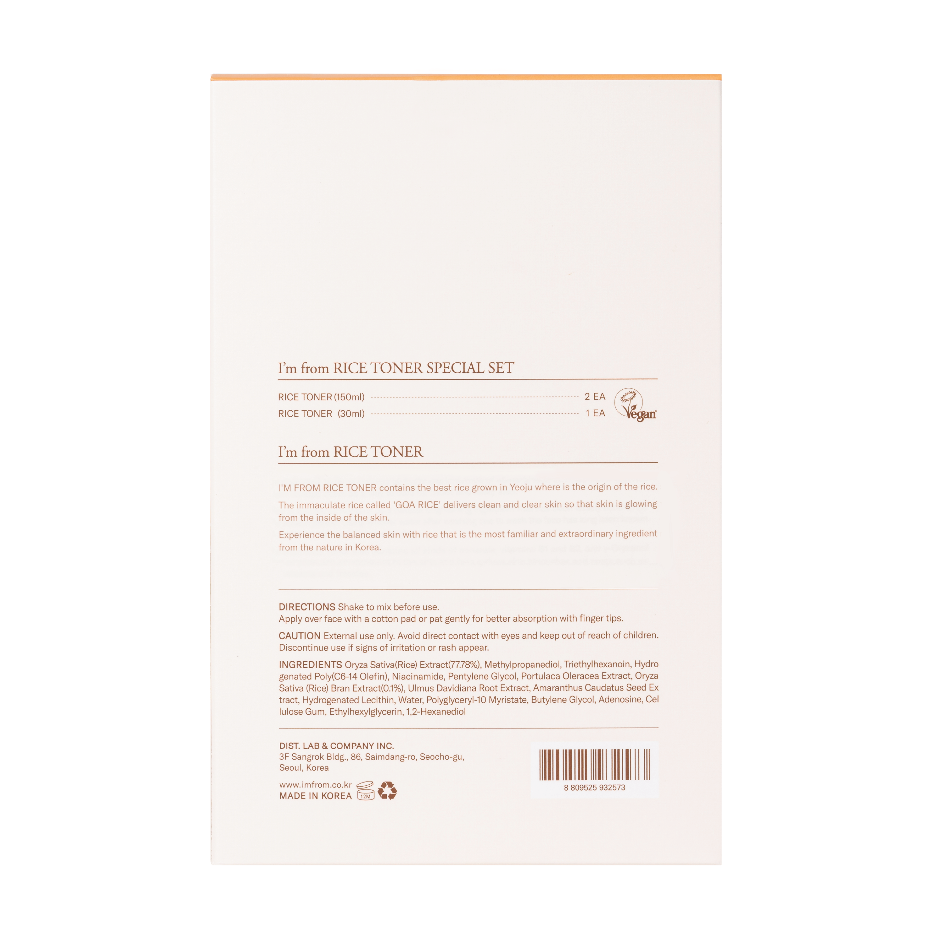 Settet inneholder 2 stk. I'm From Rice Toner i full størrelse (150 ml x 2), og 1 stk. I'm From Rice Toner i ministørrelse (30 ml).