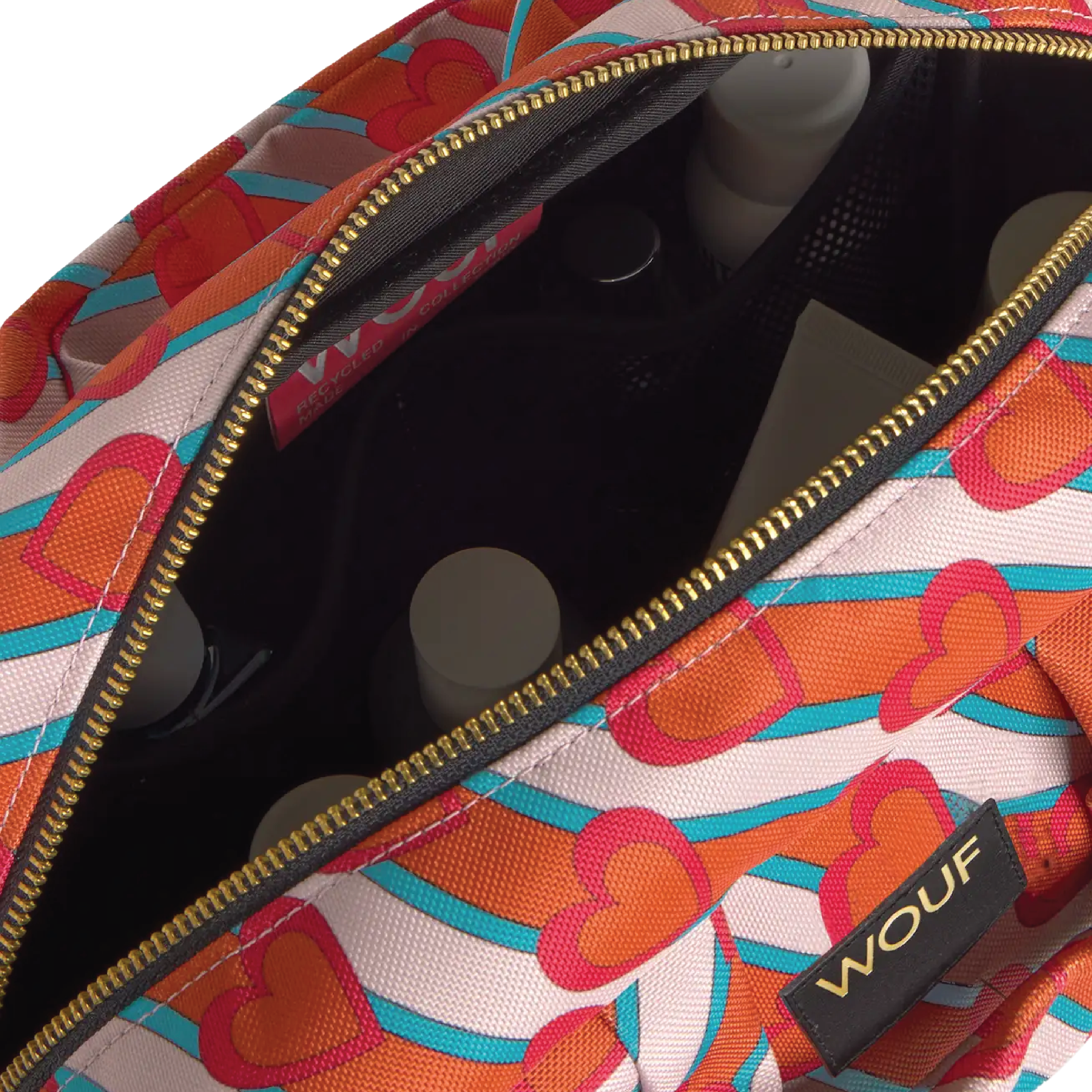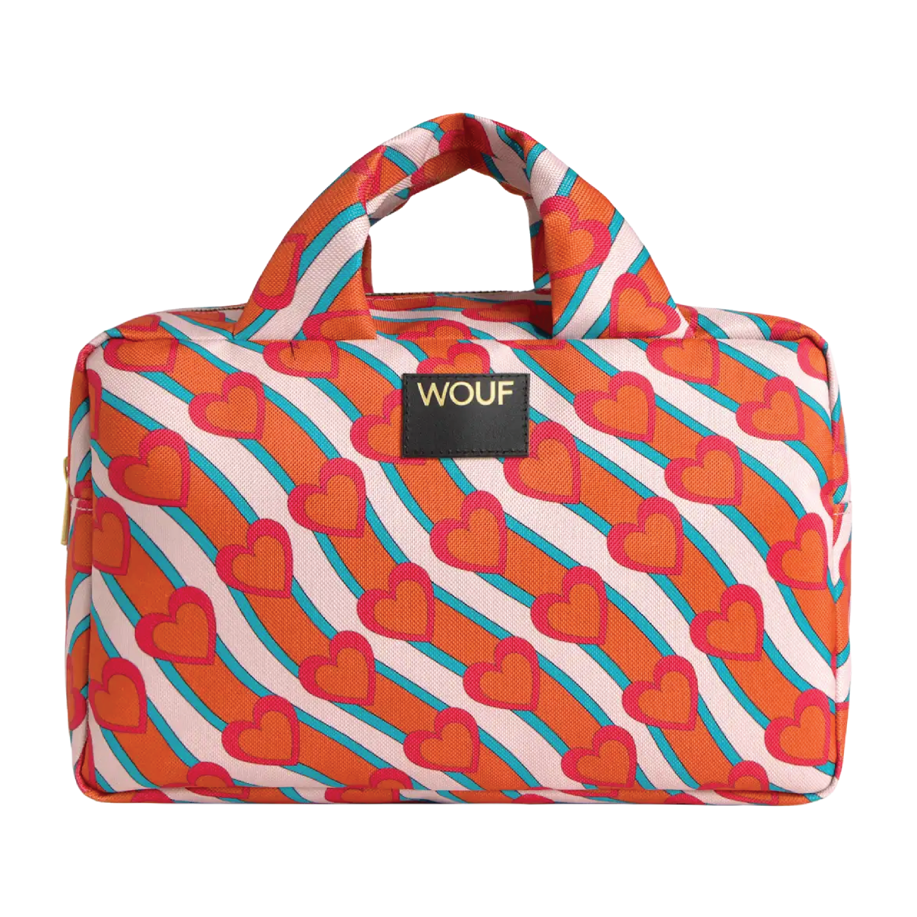 WOUF Heartbeat Large Toiletry Bag er en stor toalettveske med håndtak og god plass til det du trenger, med et motiv av hjerter.