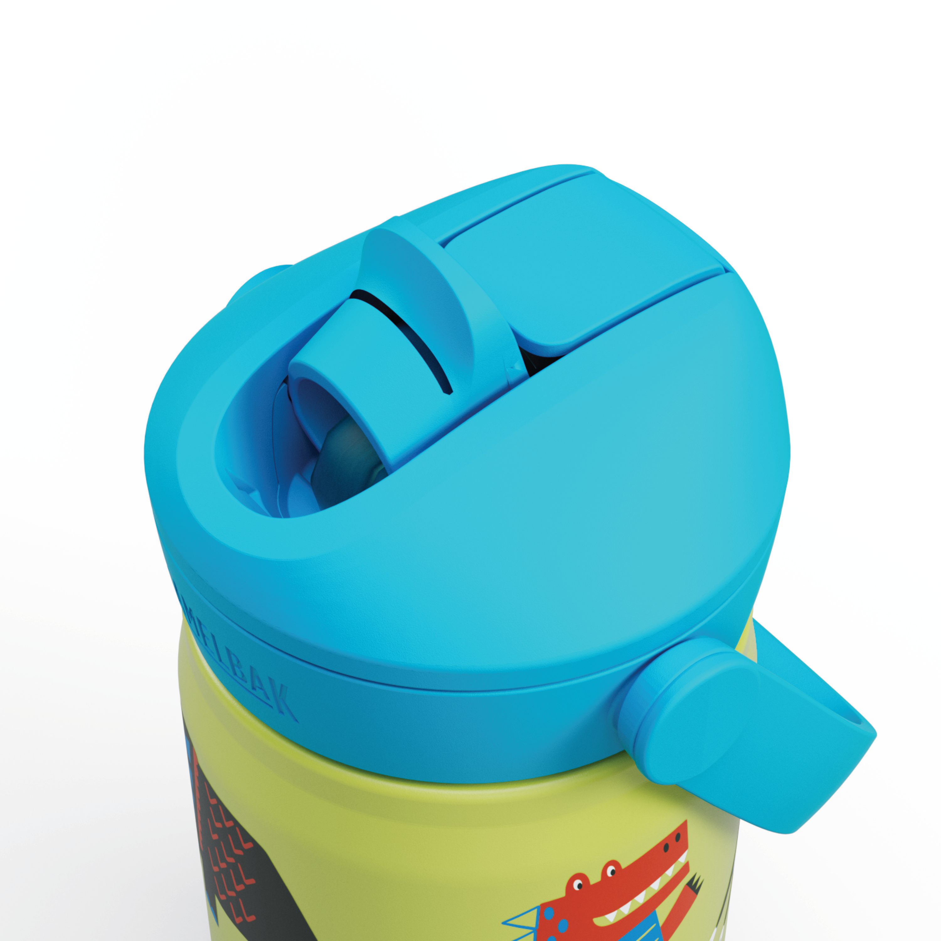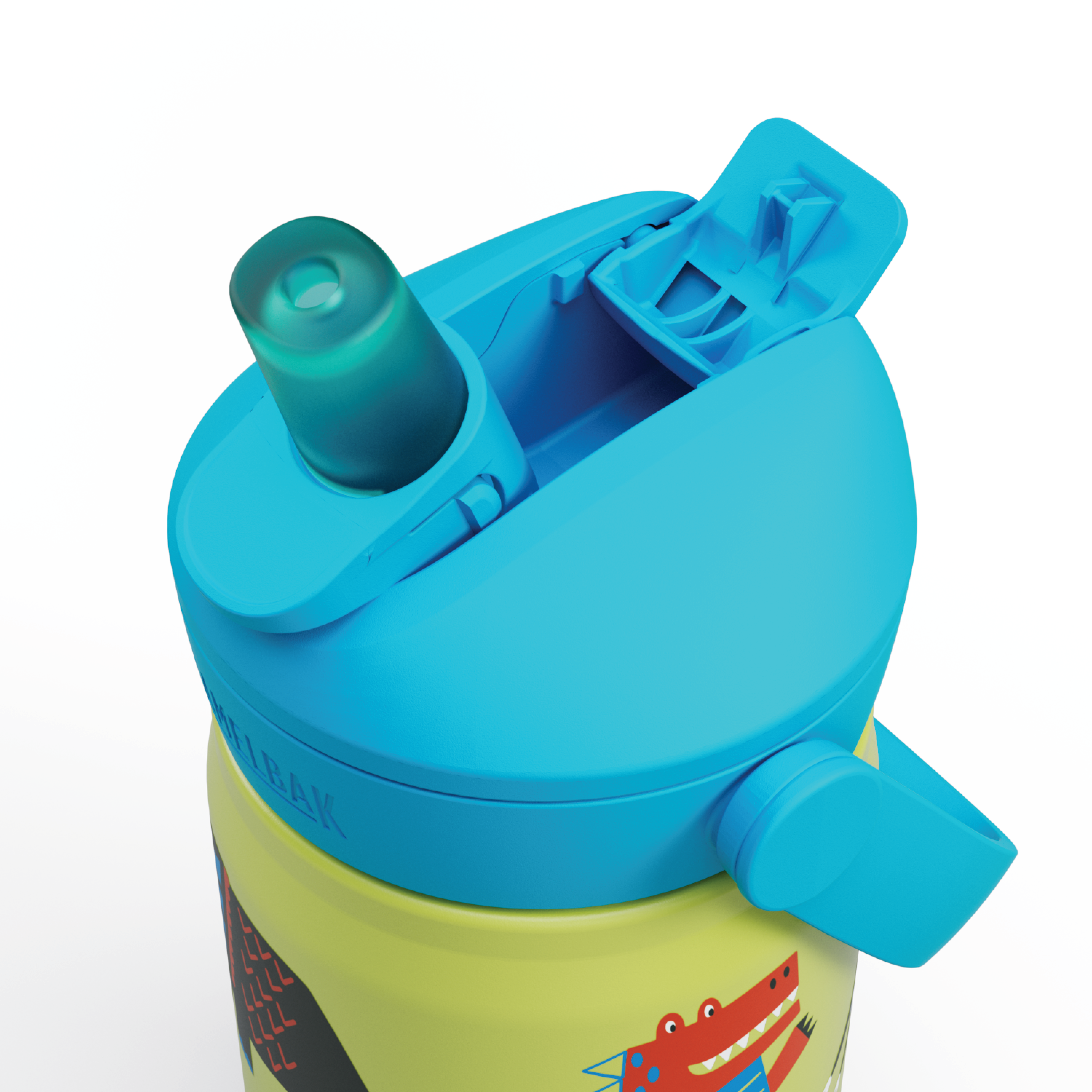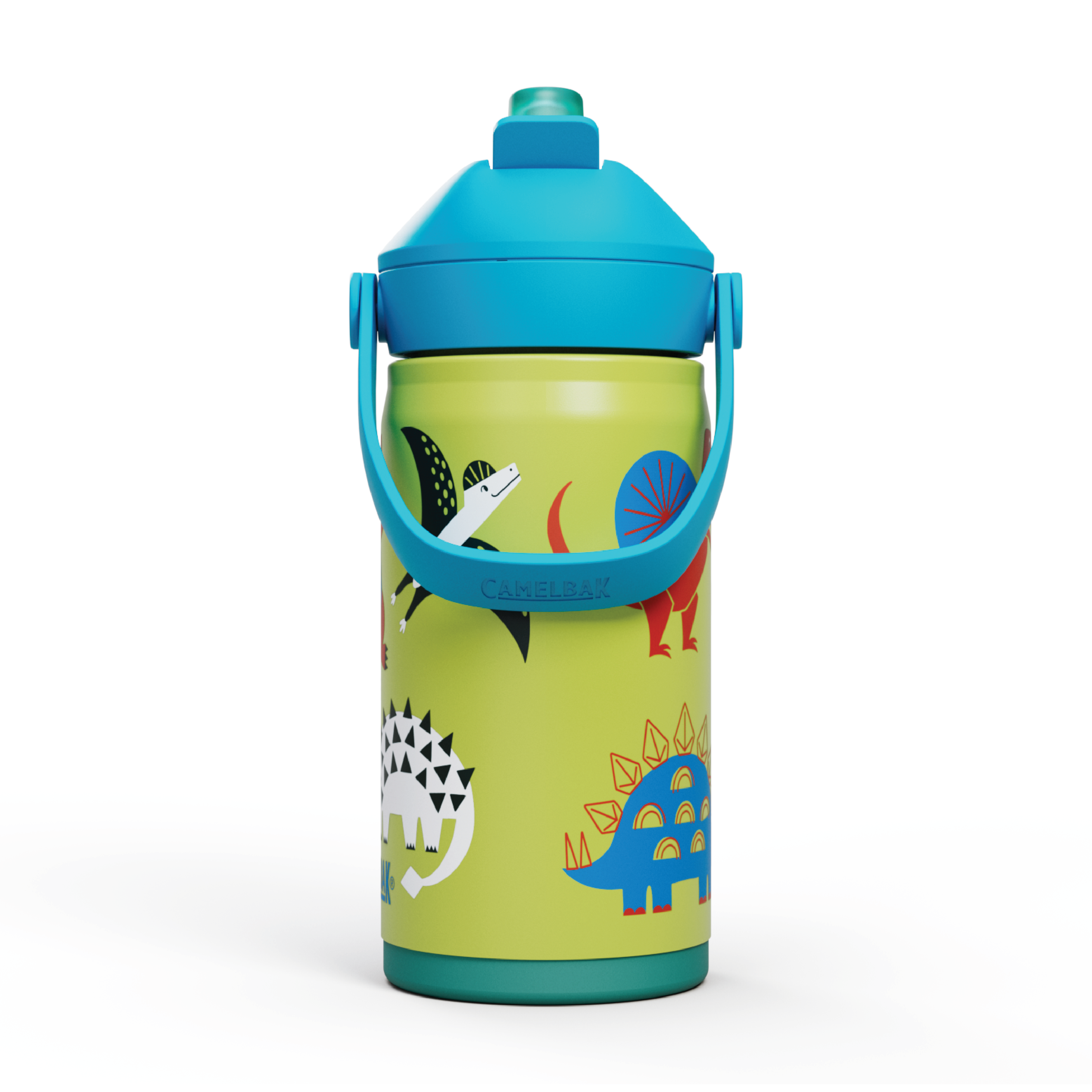 Camelbak Thrive Flip Straw Kids Insulated Drikkeflaske er en drikkeflaske i stål til barn, med motiv av dansende dinosaurer.
