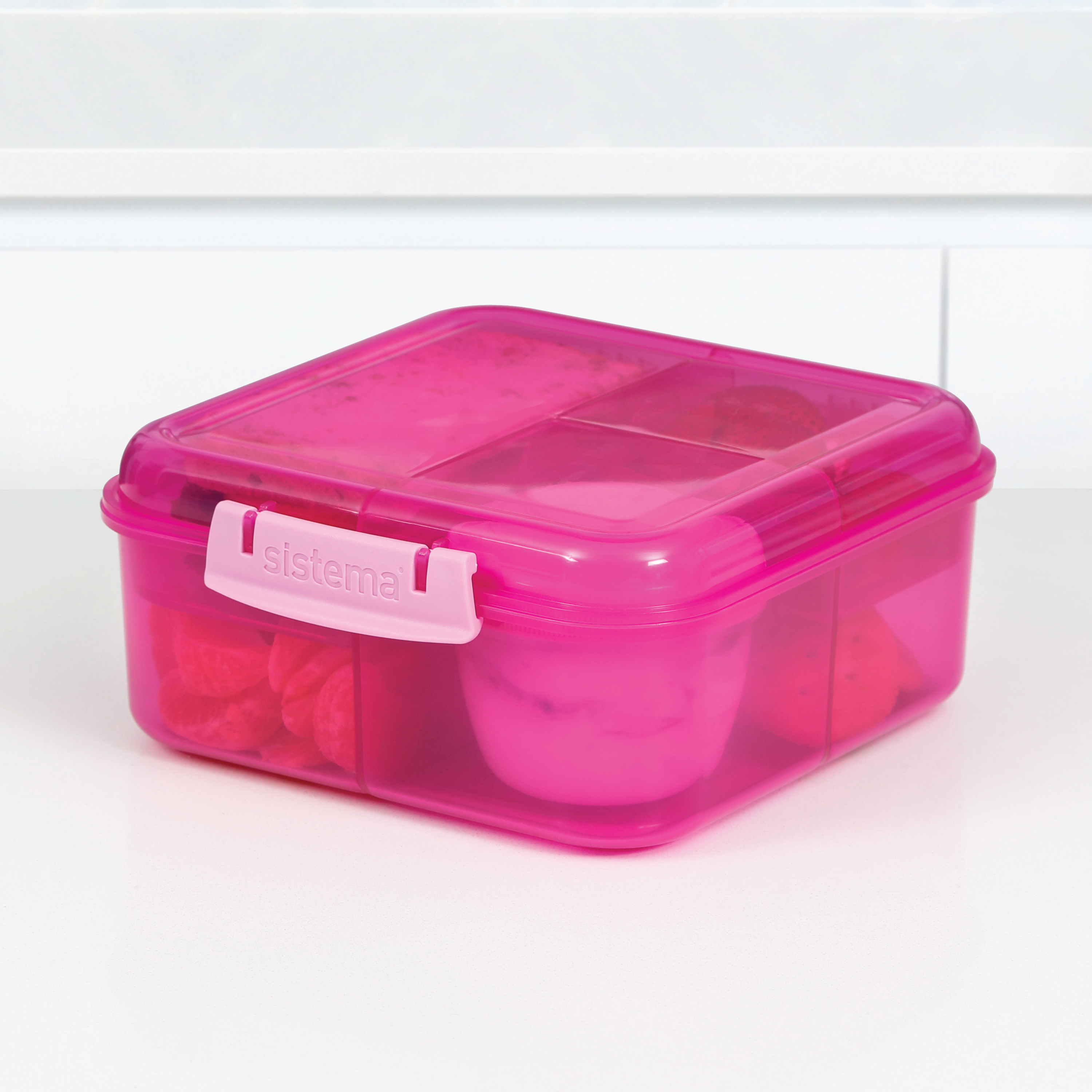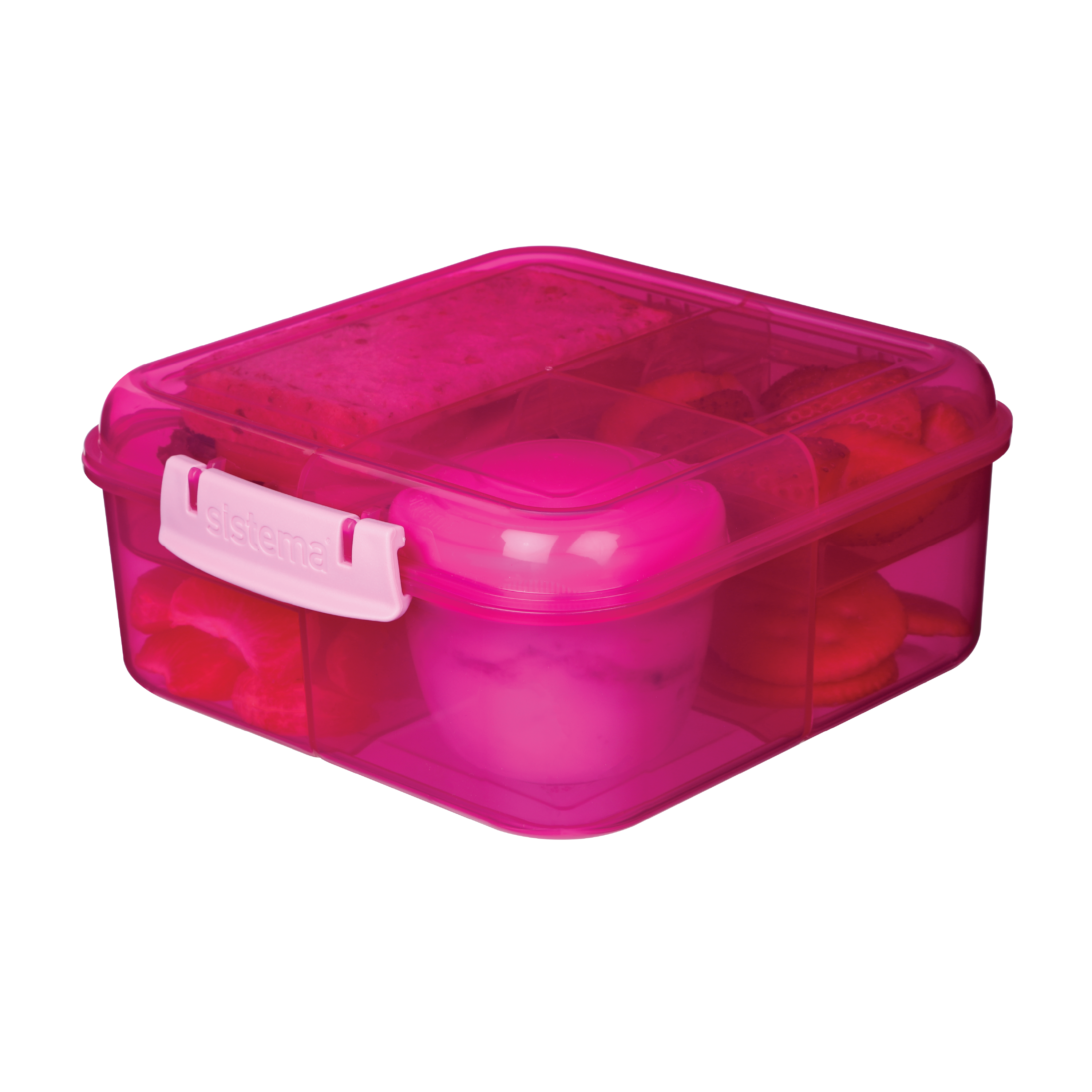 Sistema Bento Cube Matboks er en romslig og praktisk matboks med flere rom, i fargen rosa.