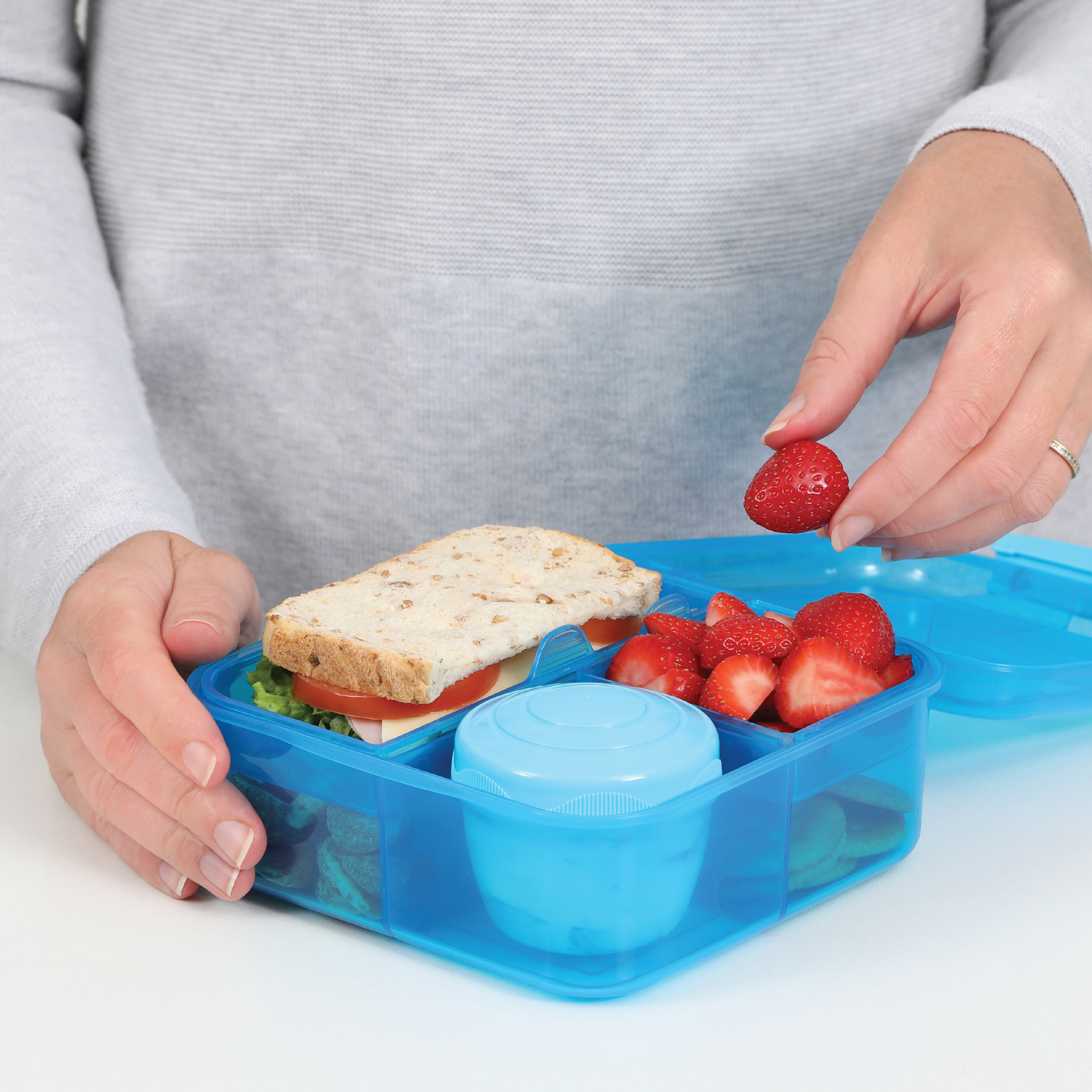 Sistema Bento Cube Matboks er en romslig og praktisk matboks med flere rom, i fargen blå.