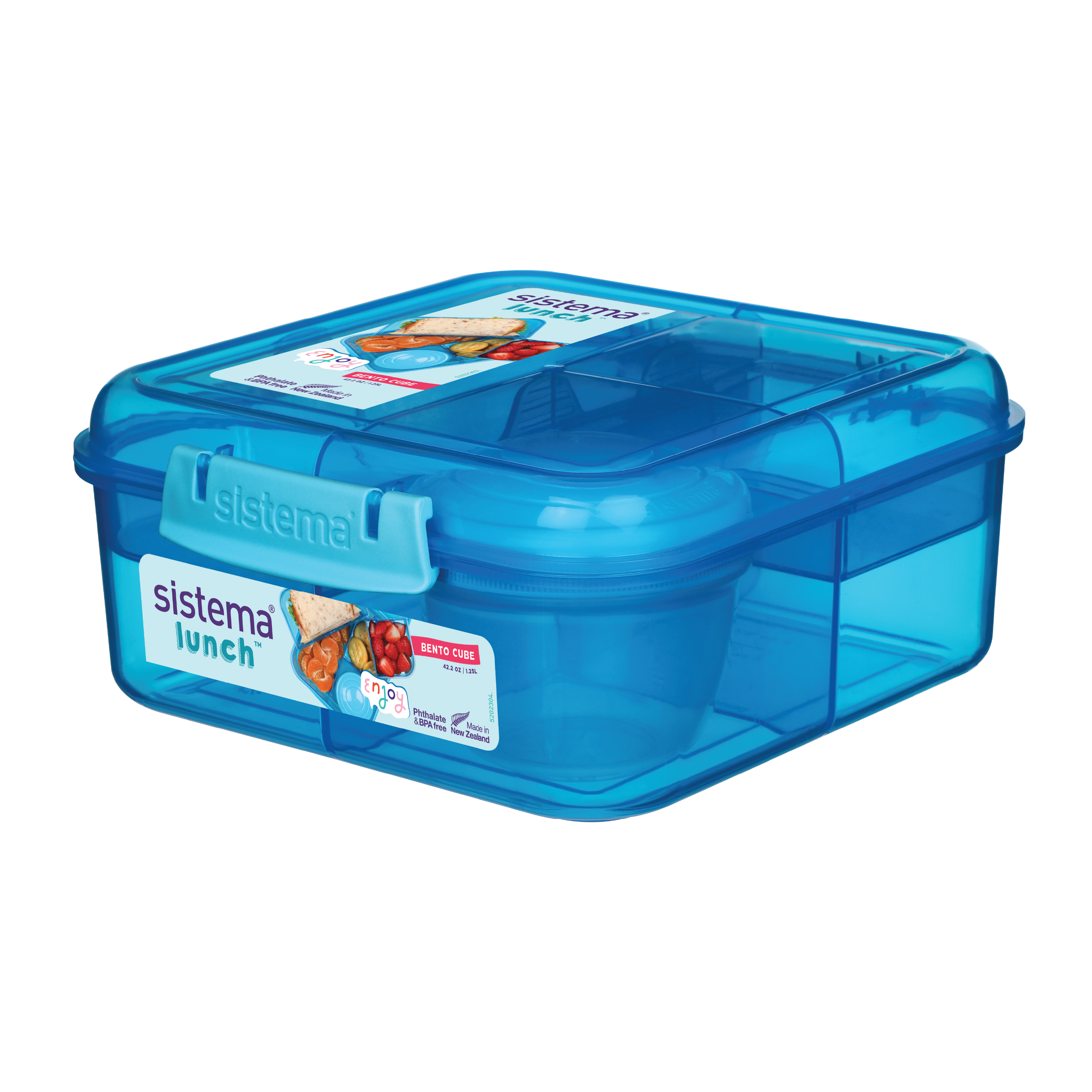 Sistema Bento Cube Matboks har en kapasitet på 1,25 liter og er delt inn i flere rom med ulike funksjoner. Rommene er avtagbare, som gjør det enkelt å tilpasse inndelingen etter behov, slik at maten holdes adskilt gjennom dagen. Matboksen inneholder også en Yogurt To Go-kopp (150 ml) som passer til oppbevaring av for eksempel nøtter, dip, oppkuttet frukt eller en liten pastasalat. Lokket er hengslet bak og lukkes med den karakteristiske Sistema-klipsen foran. Størrelsen passer godt i en skolesekk eller barnehagesekk. Matboksen tåler oppvaskmaskin på øverste hylle, kan brukes i fryser og i mikrobølgeovn uten lokk.