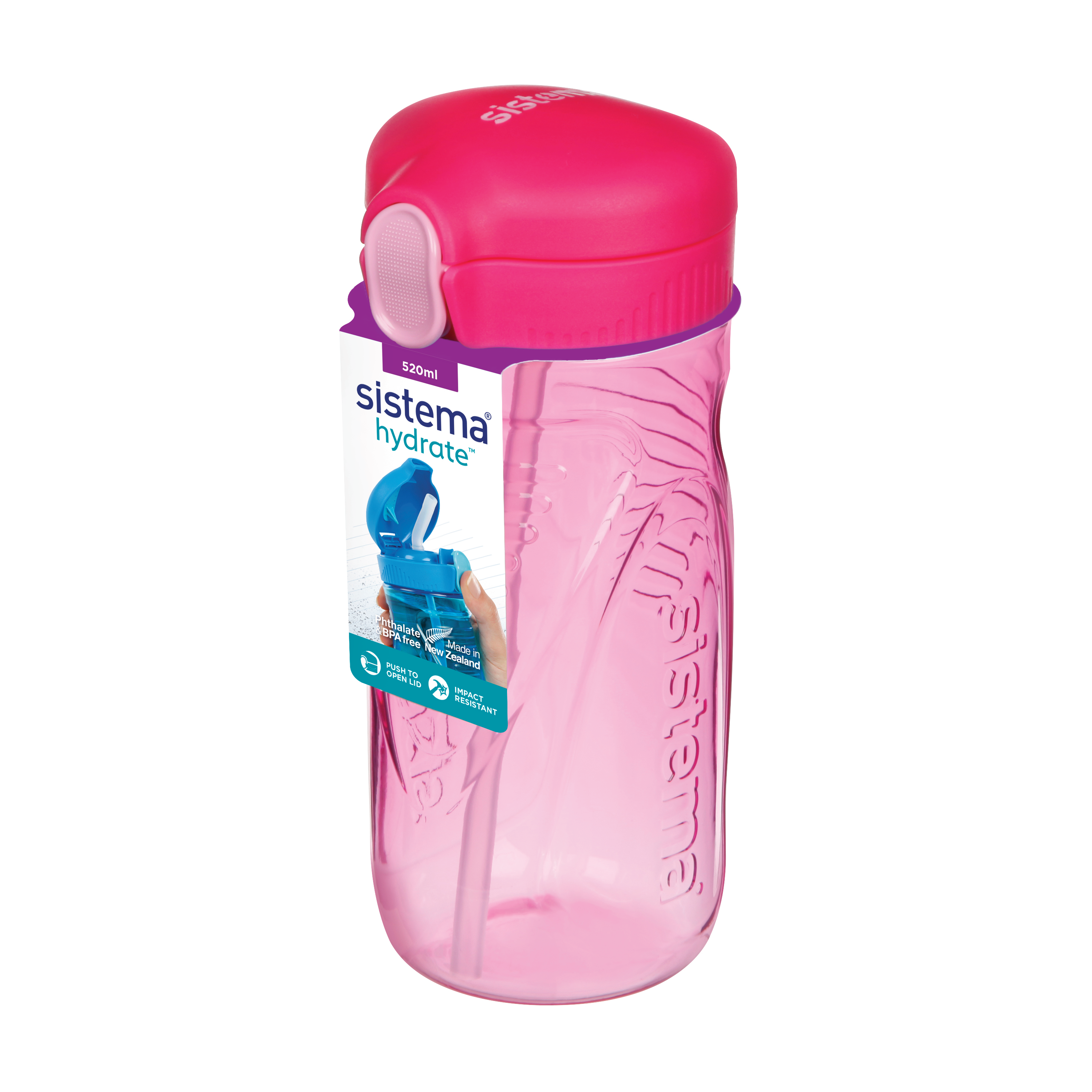 - Drikkeflaske på 520 ml med vippelokk og silikonsugerør.
