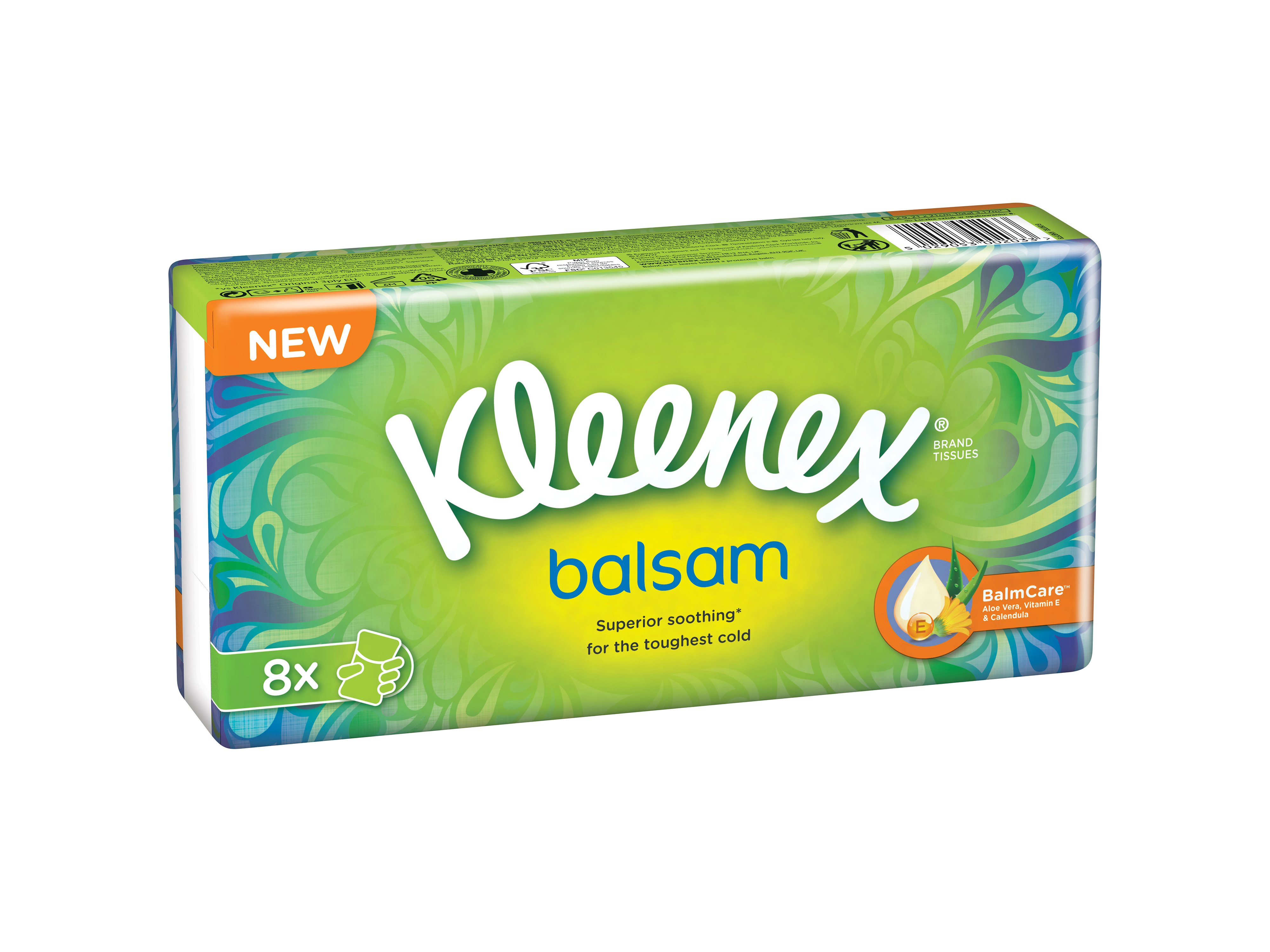 Kleenex Balsam lommetørkler er myke og behaglige lommetørkler som forhindrer sår og rød nese.