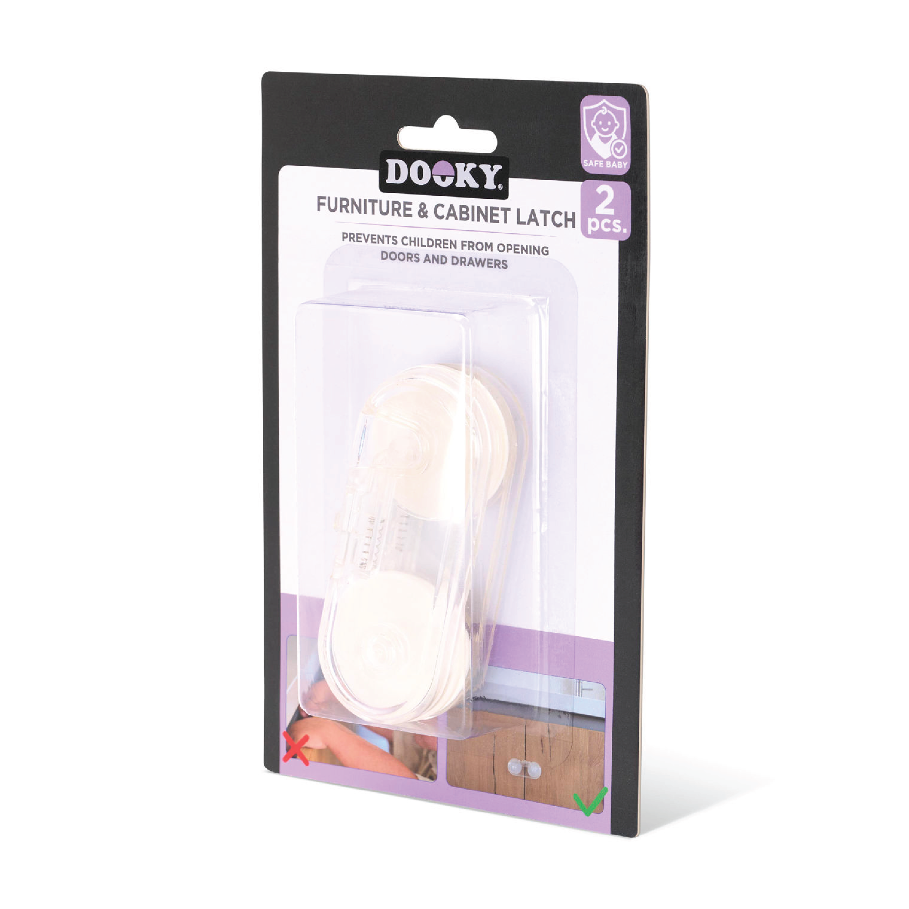 Dooky Møbel- og skaplås for glass er spesielt utviklet for blant annet glasskap, og bidrar til å beskytte innhold som tallerkener, bøker og andre skjøre gjenstander fra små og nysgjerrige barn. Låsen monteres på innsiden av skapdøren med lim, slik at den er usynlig utenfra. Den solide konstruksjonen holder dørene sikkert lukket, samtidig som den er enkel for voksne å åpne. Låsen kan enkelt fjernes uten å etterlate merker.