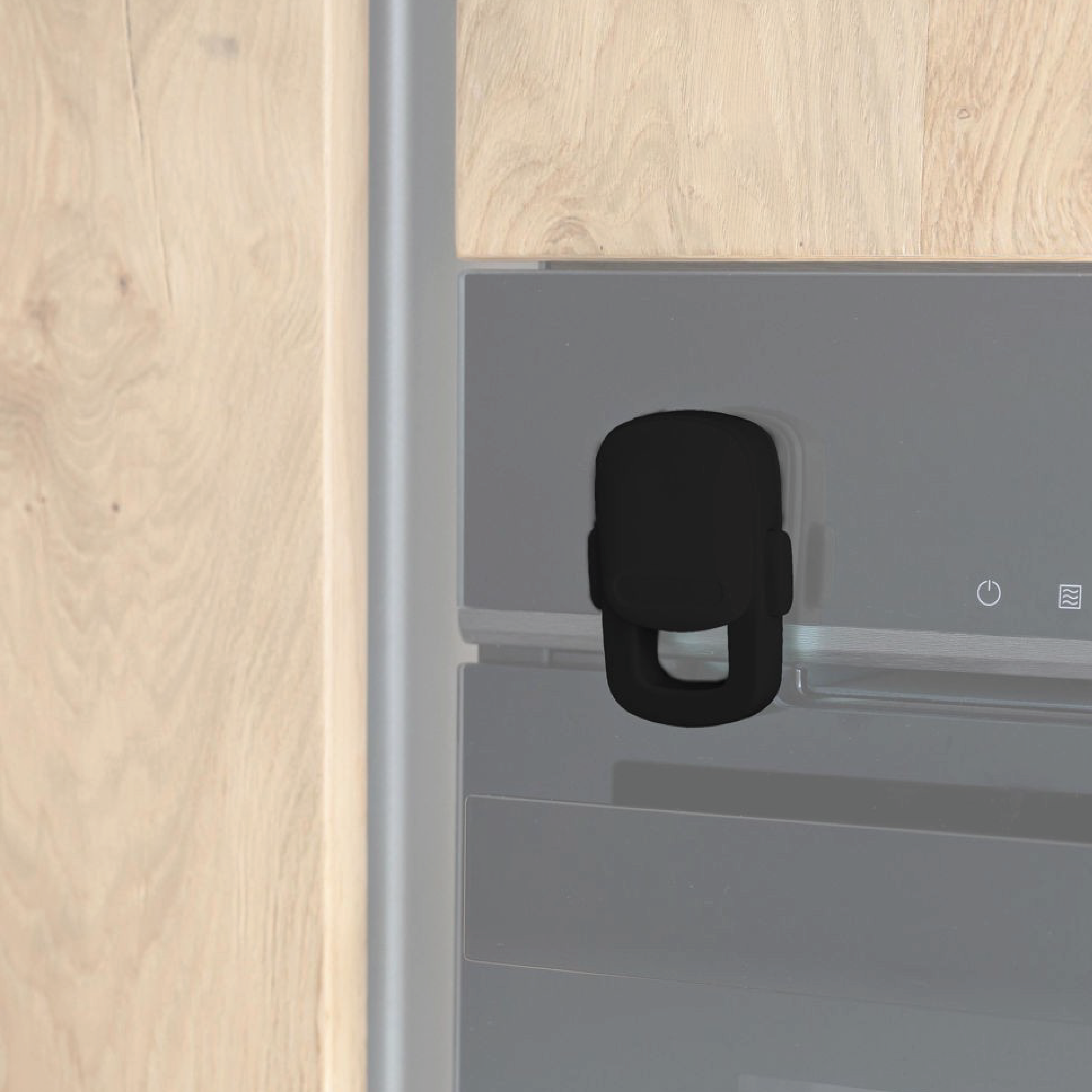 Dooky Ovnslås festes enkelt på ovnsdøren og karmen med en sterk limstripe uten behov for verktøy. Låsen har en smart klikkmekanisme som gjør den enkel å åpne for voksne, men vanskelig for barn. Den er laget av et varmebestandig materiale og er utviklet for bruk på kjøkkenet. Den diskrete utformingen gjør at den passer godt inn i de fleste kjøkken, samtidig som den bidrar til økt sikkerhet i hjemmet.