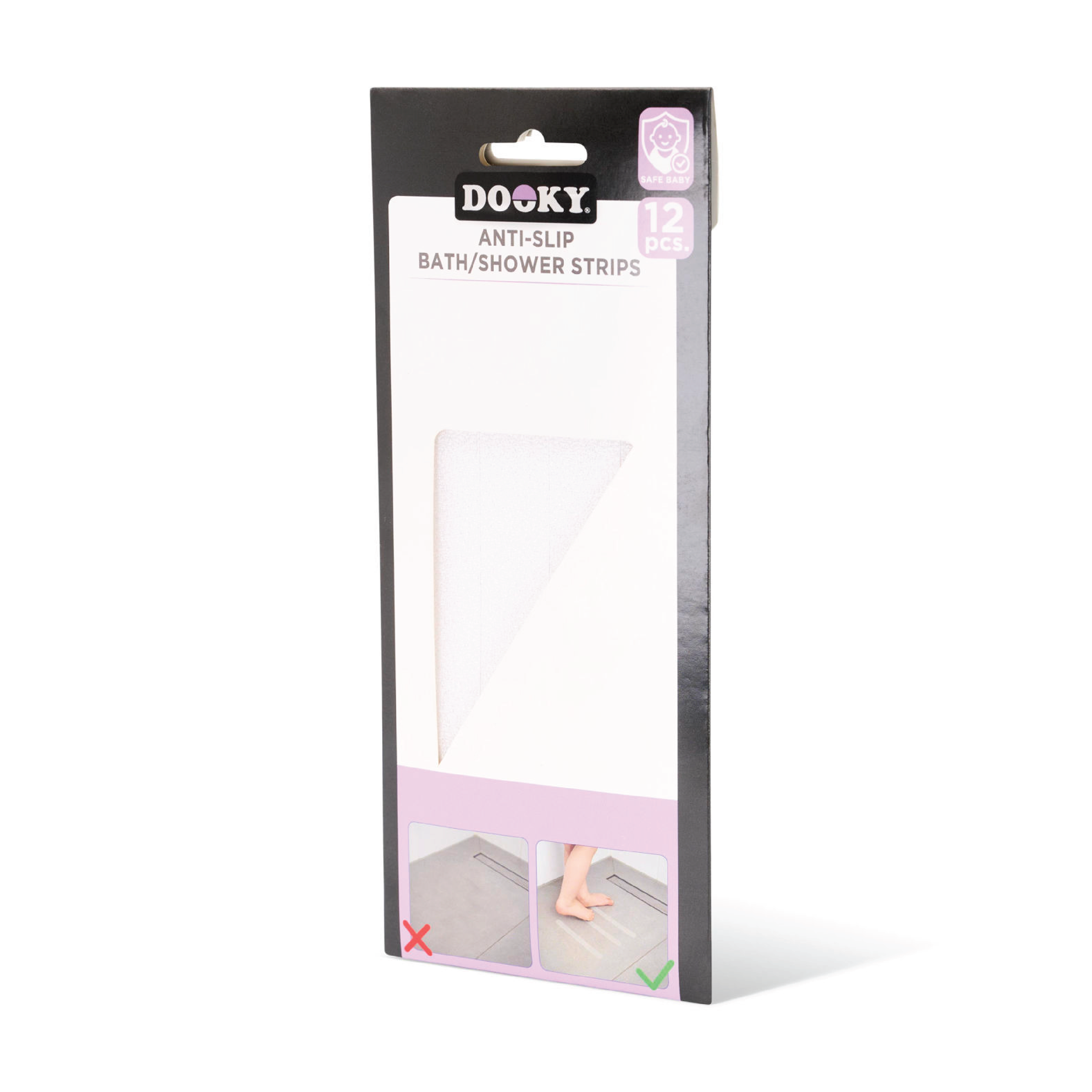 Dooky Antiskli bad/dusj-strimler er laget for å redusere risikoen for å skli på våte overflater som badekar, dusj og fliser. Stripene har en strukturert overflate som gir godt fotfeste, samtidig som de føles behagelige under føttene. De festes enkelt med sin selvklebende bakside uten behov for verktøy, og gir god barnesikring i dusjen og badekaret.