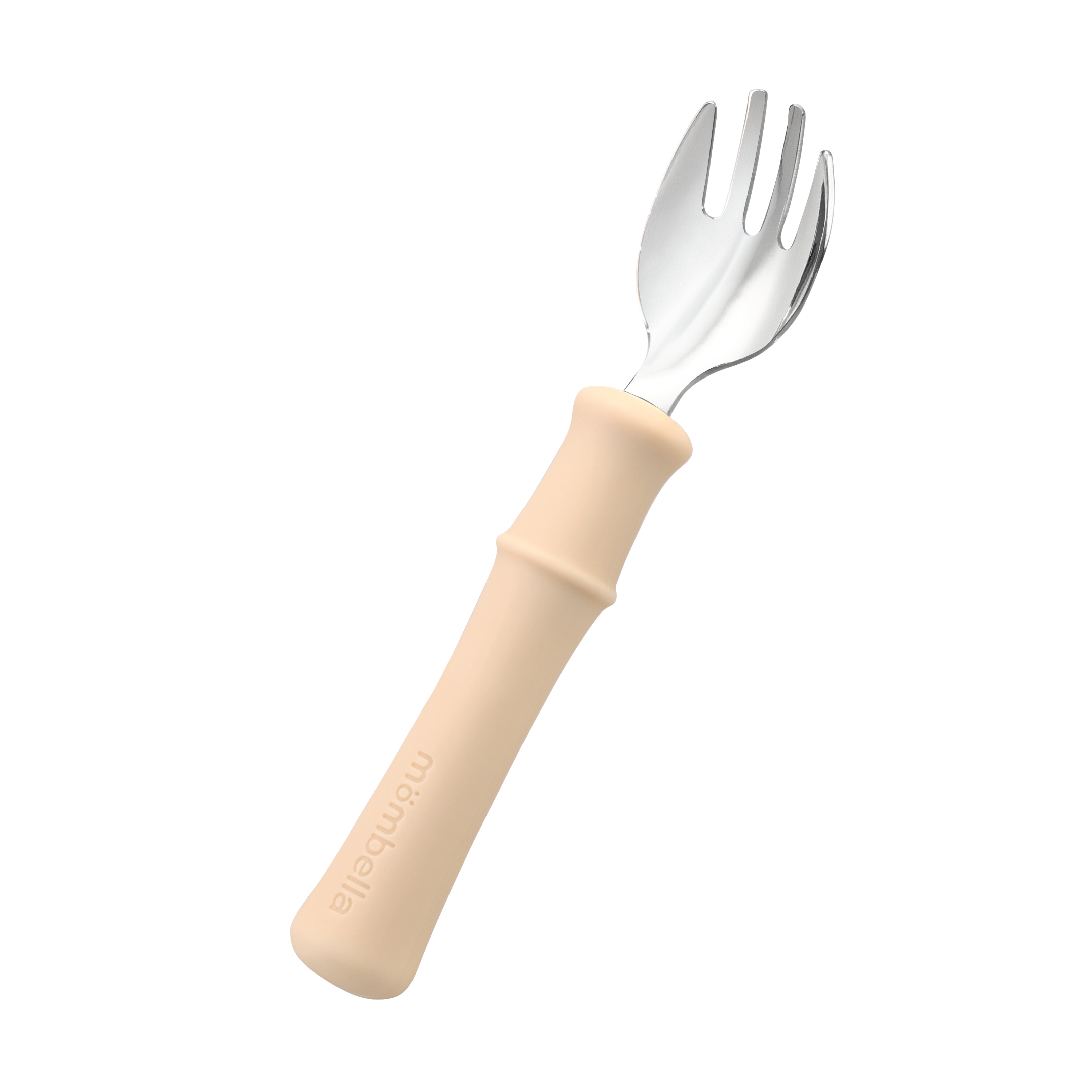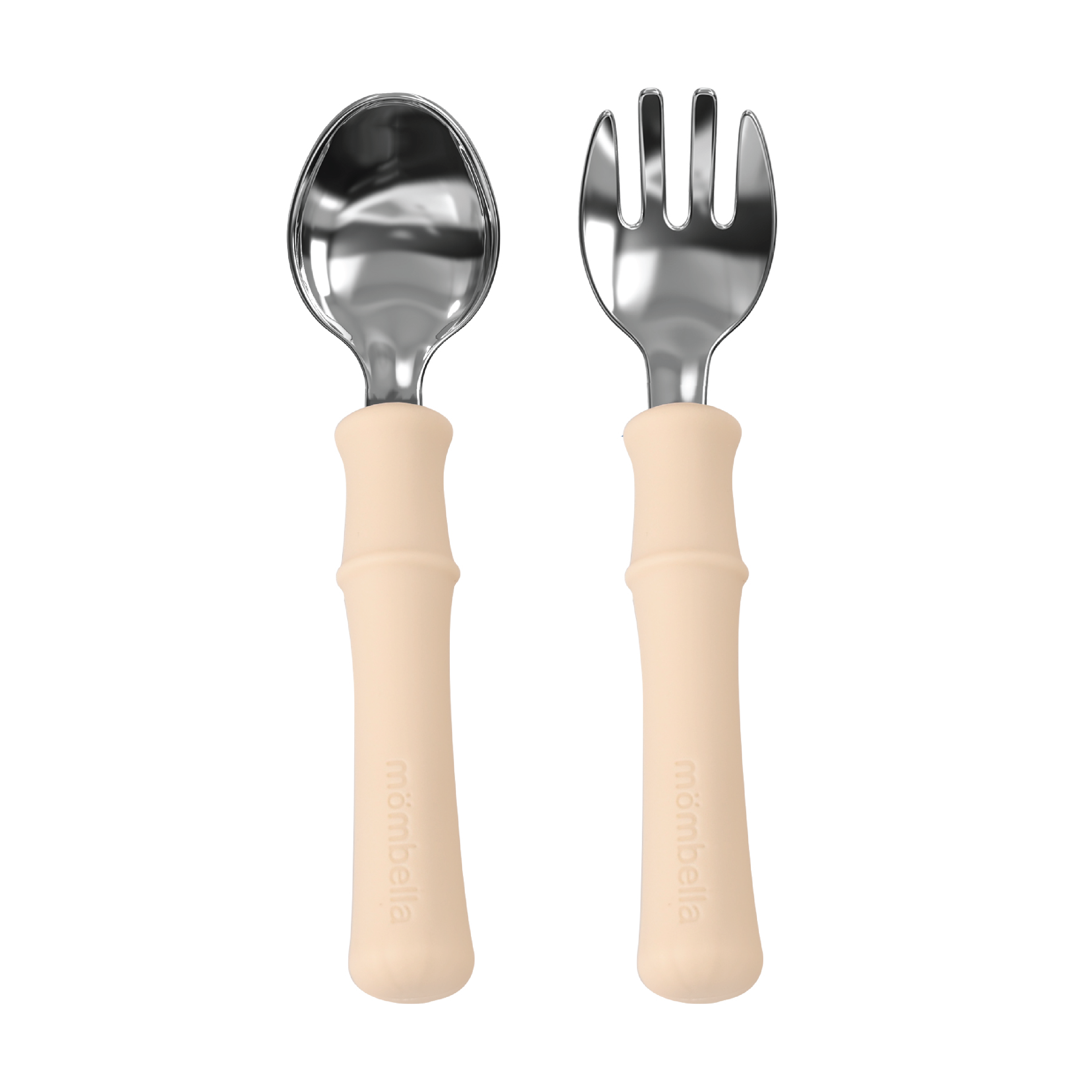 Mombella Panda Gaffel Og Skje Sett er laget i rustfritt stål og har bambusformede håndtak som gir et godt og stabilt grep for små hender. Utformingen gjør det lettere for barnet å håndtere bestikket selv under måltider, samtidig som materialene gir en solid og praktisk løsning til daglig bruk.