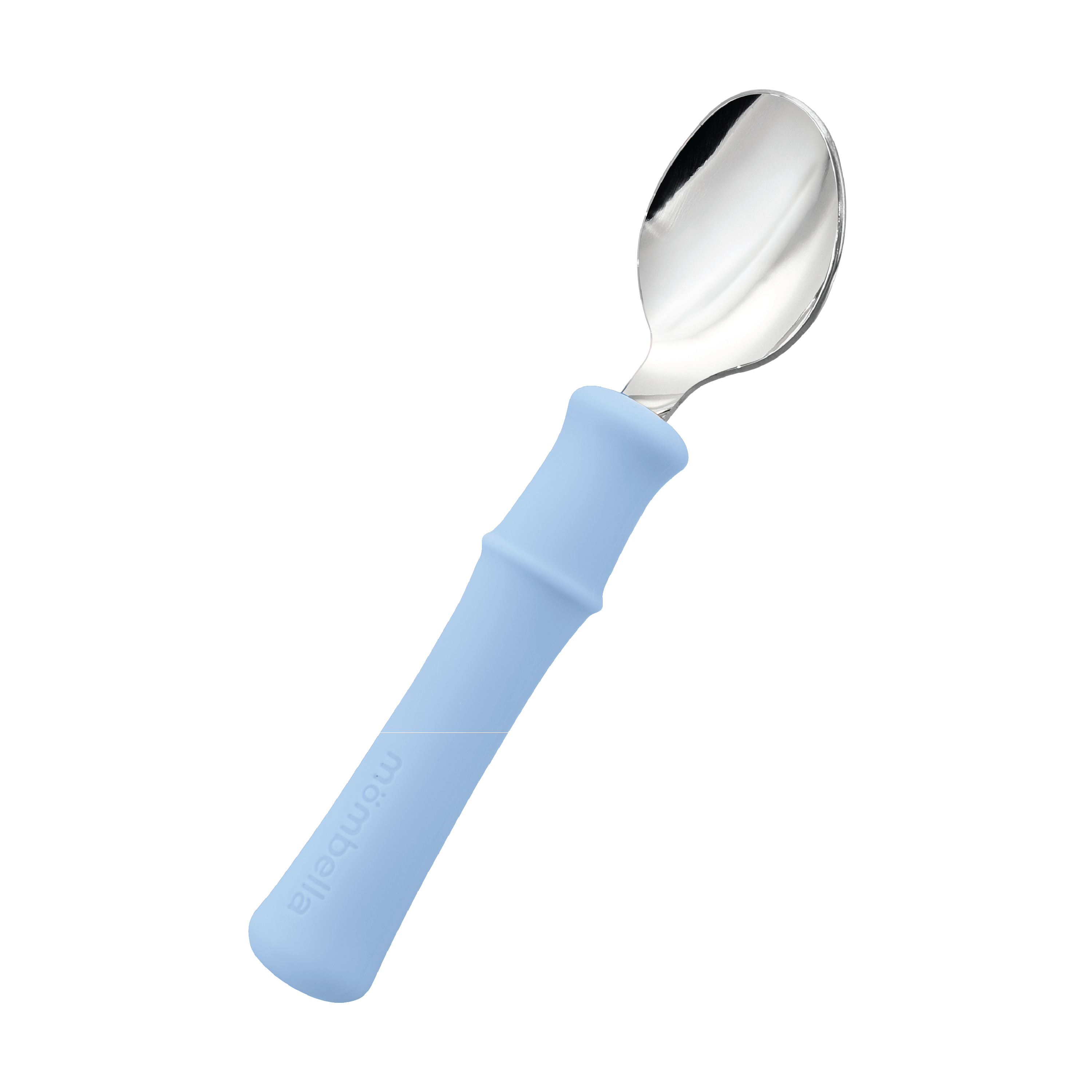 Mombella Panda Gaffel Og Skje Sett er laget i rustfritt stål og har bambusformede håndtak som gir et godt og stabilt grep for små hender. Utformingen gjør det lettere for barnet å håndtere bestikket selv under måltider, samtidig som materialene gir en solid og praktisk løsning til daglig bruk.