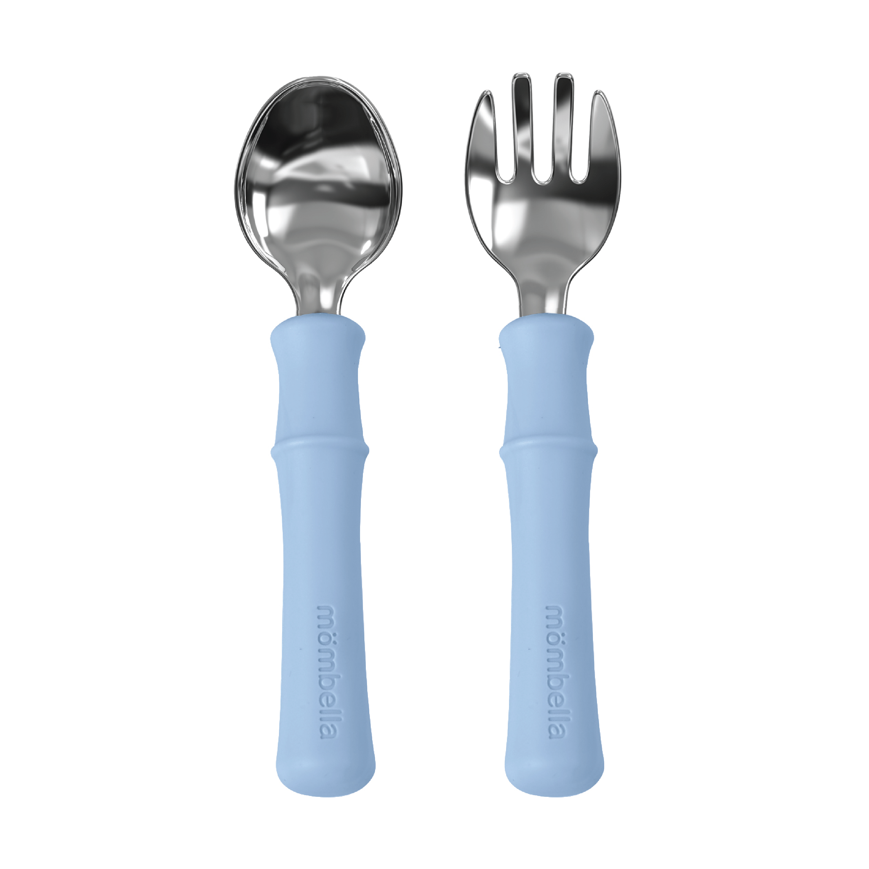 - Gaffel og skje sett som gjør det enklere for barnet å spise selv.