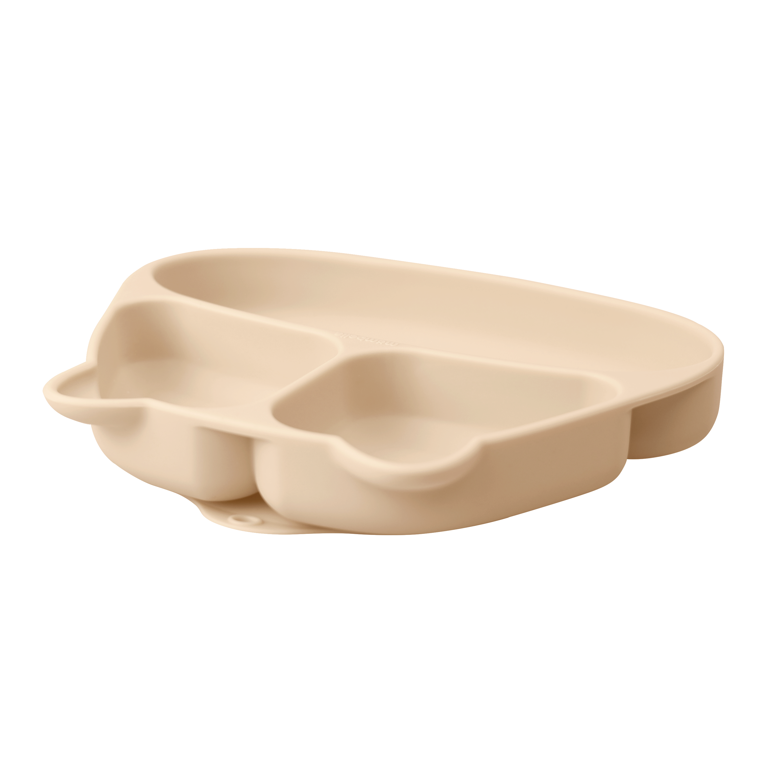 Mombella Panda Silikon Tallerken Med Sugefot har et panda-inspirert design som gjør måltidet mer innbydende for barnet. Den oppdelte utformingen gjør det mulig å separere ulike matretter, slik at smakene ikke blandes. Tallerkenen har en sugefot som bidrar til å holde tallerkenen på plass under måltidet.