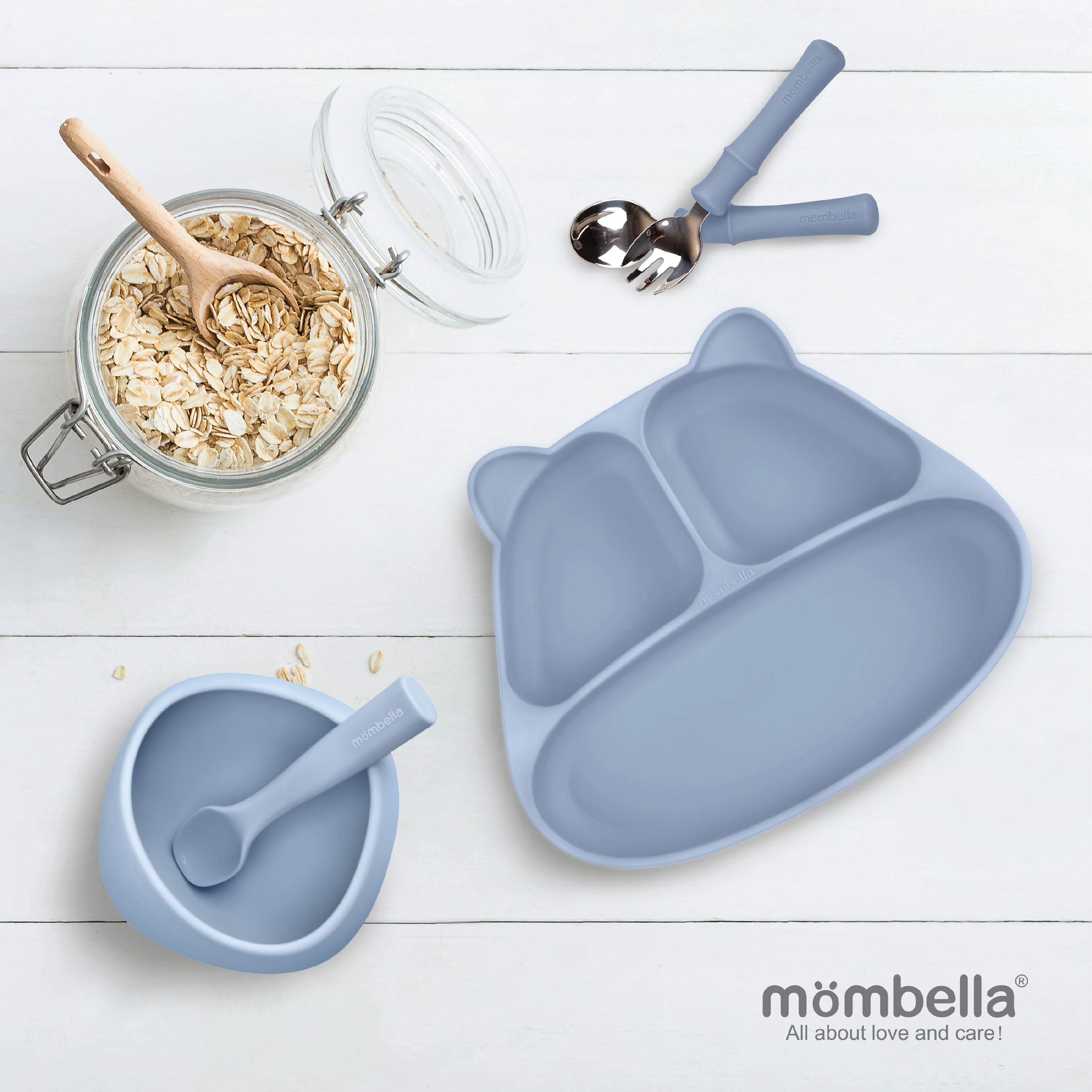 Mombella Panda Silikon Tallerken Med Sugefot har et panda-inspirert design som gjør måltidet mer innbydende for barnet. Den oppdelte utformingen gjør det mulig å separere ulike matretter, slik at smakene ikke blandes. Tallerkenen har en sugefot som bidrar til å holde tallerkenen på plass under måltidet.