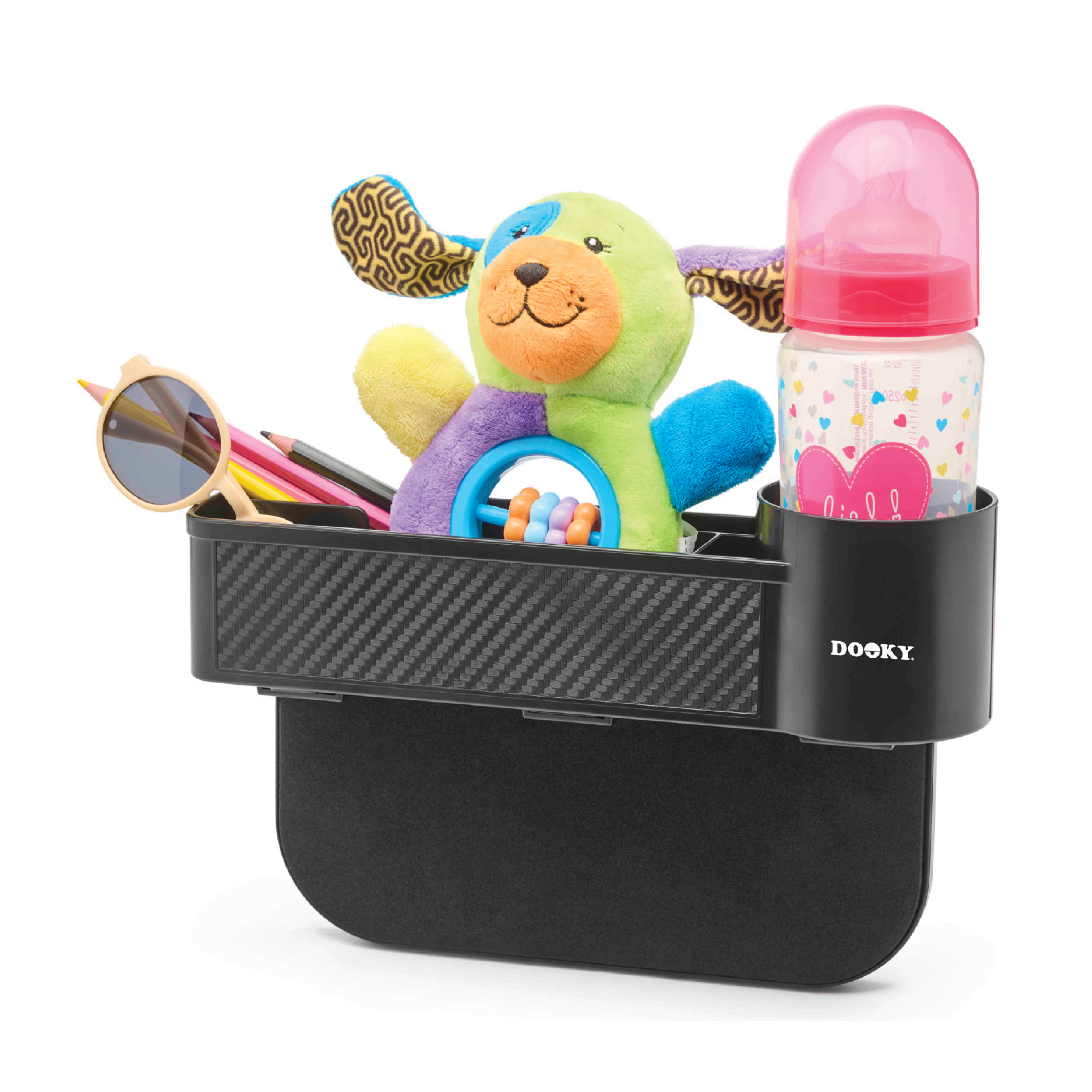 Dooky Bilorganisering plasseres mellom setene eller bak i bilen og gir praktisk oppbevaring av blant annet flaske, leker, telefon og andre småting. Det smarte designet gjør at den holder seg på plass under kjøreturen, samtidig som den er laget av slitesterke materialer som er enkle å rengjøre. Den har både koppholder og telefonholder.