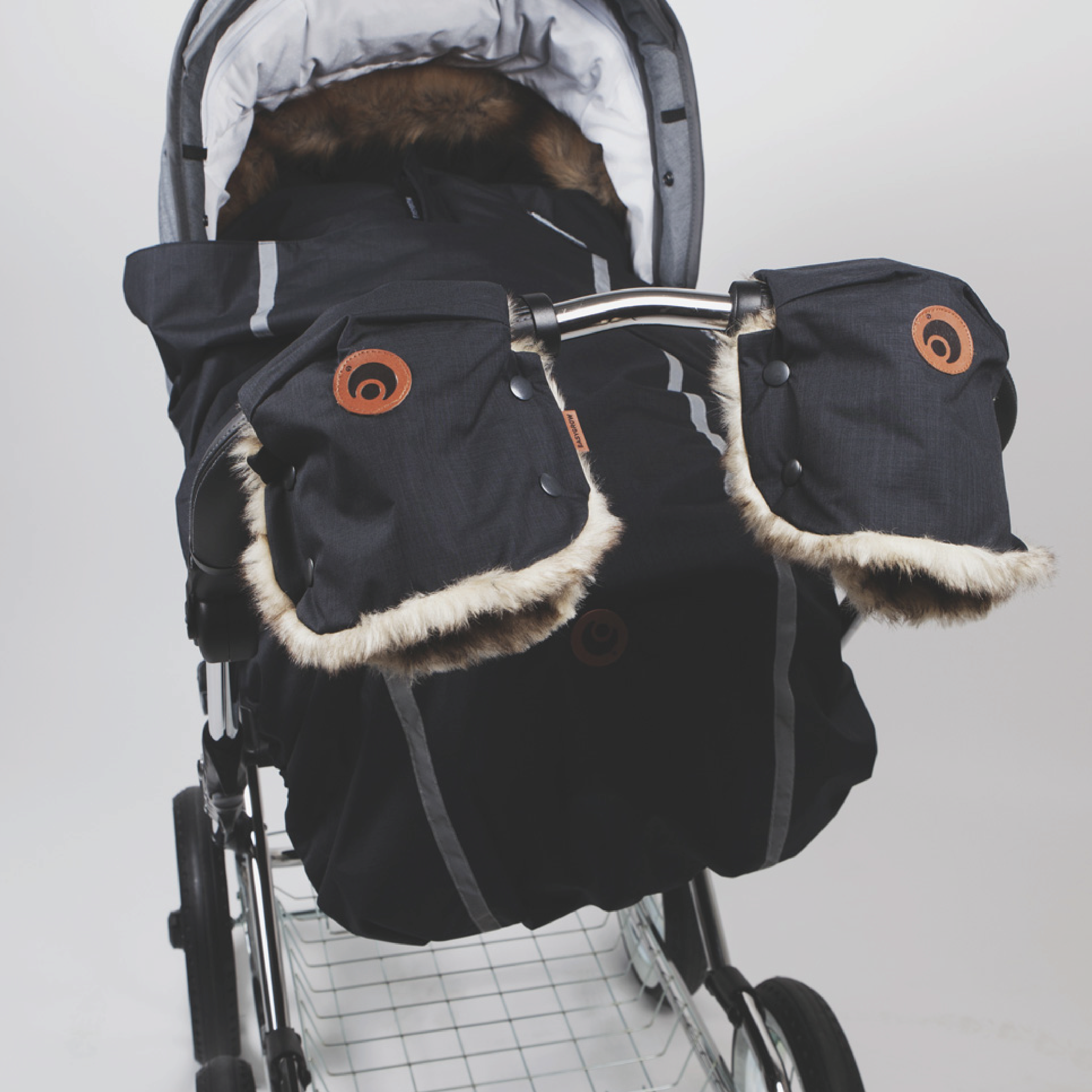 - Håndmuffer til barnevogn som holder hendene varme på kalde trilleturer.