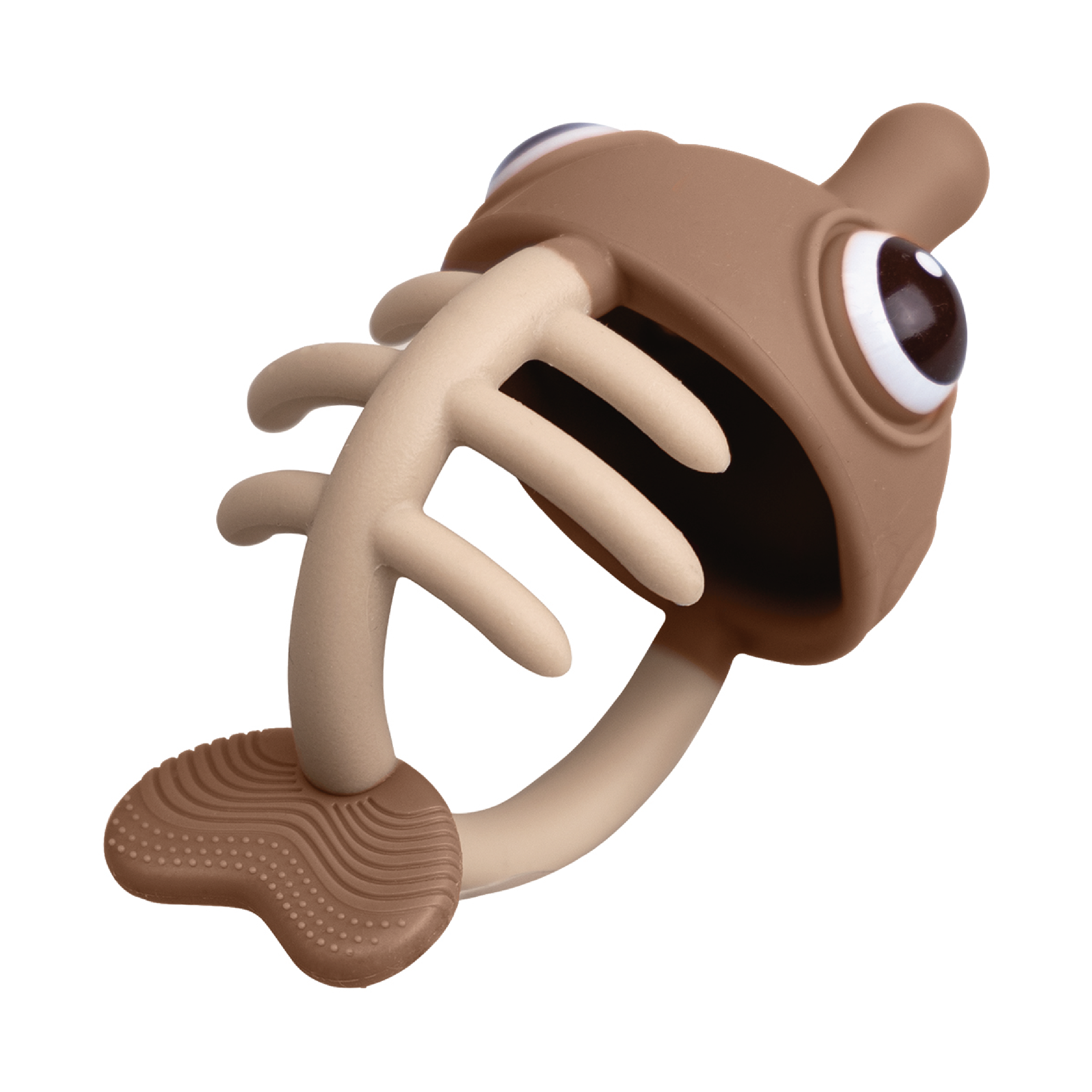 Mombella Clownfish Biteleke er laget av 100 % matsikker silikon og er utviklet som en 3-i-1 biteleke som kombinerer trøst, lek og utvikling. Den smokkformede nesen gjør den godt egnet for babyer som ikke tar vanlig smokk, mens myke teksturer og pop-up øyne stimulerer både munn, hender og sanser. Biteleken bidrar til å gi lindring ved tannfrembrudd og støtter samtidig babyens motoriske og kognitive utvikling gjennom utforskning og lek.