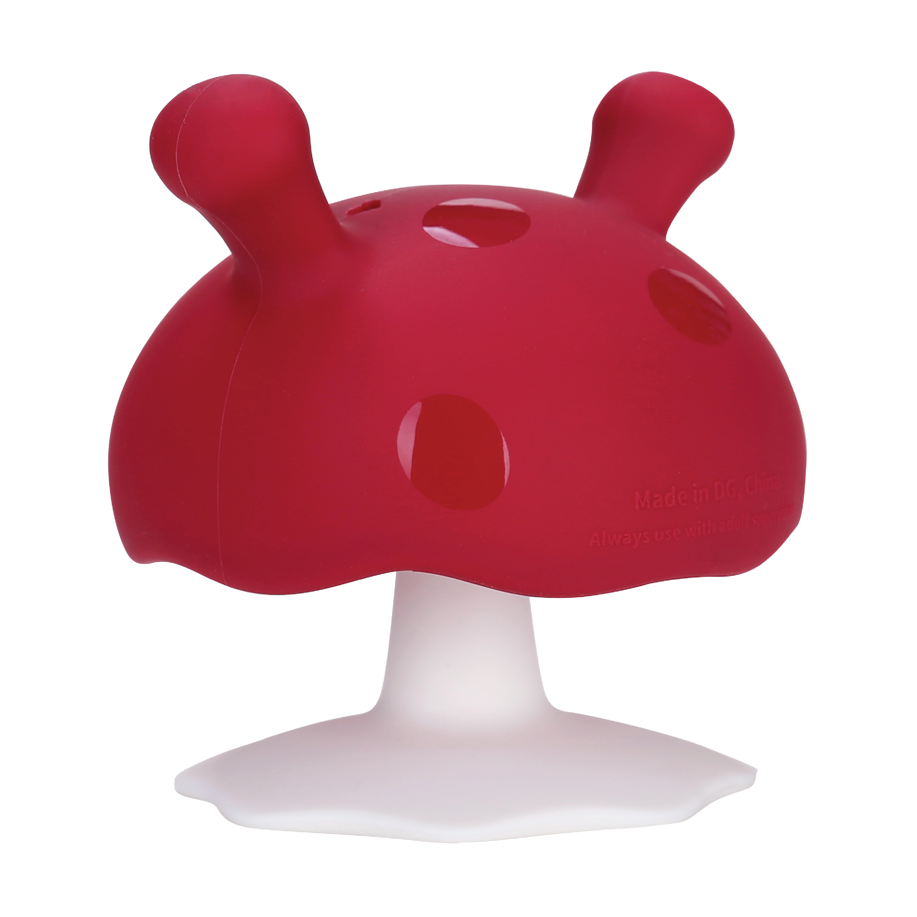 Mombella Mushroom er en biteleke som bidrar til å lindre tannkjøtt og dekke babyens suge- og bitebehov.