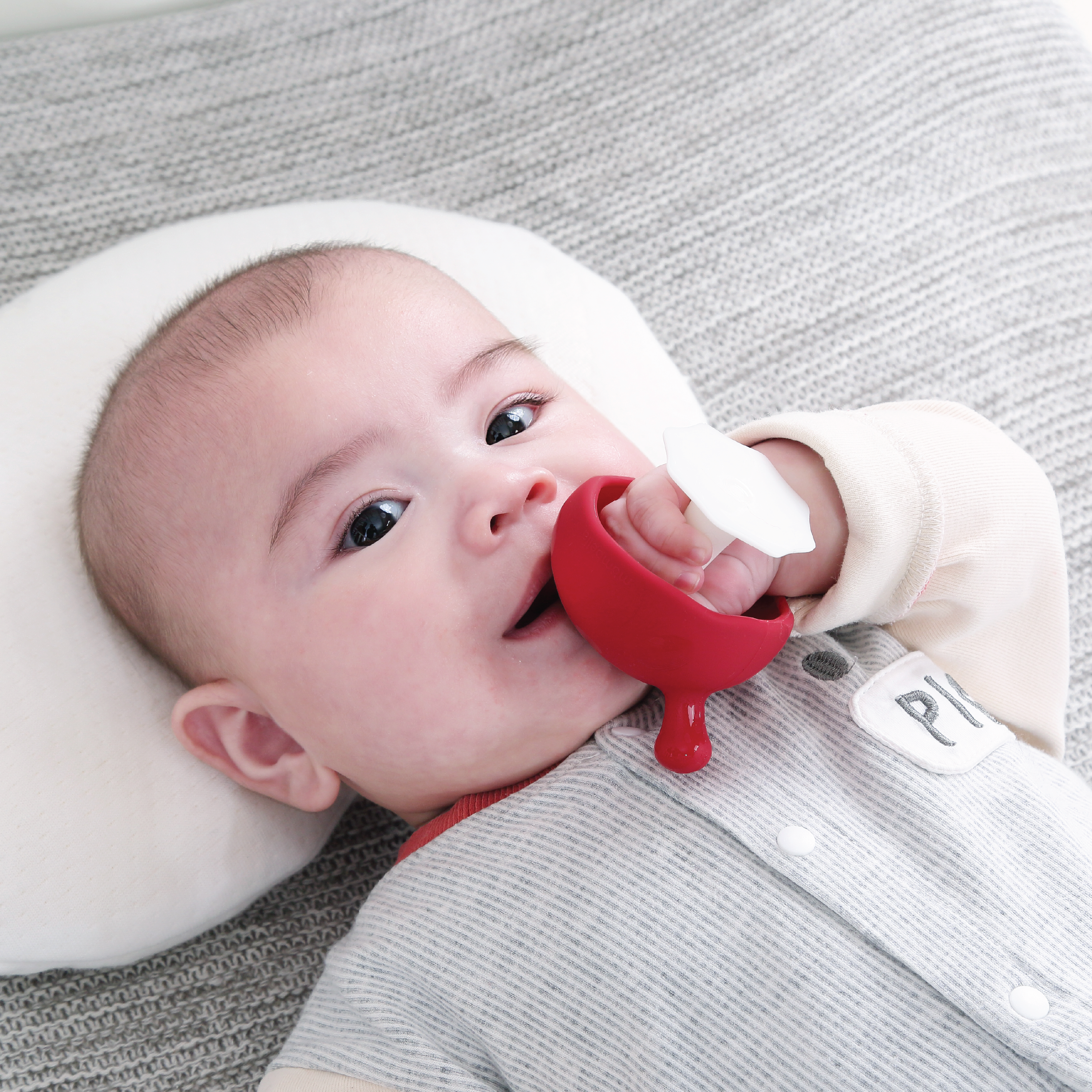 - Biteleke som bidrar til å lindre tannkjøtt og dekke suge- og bitebehov.