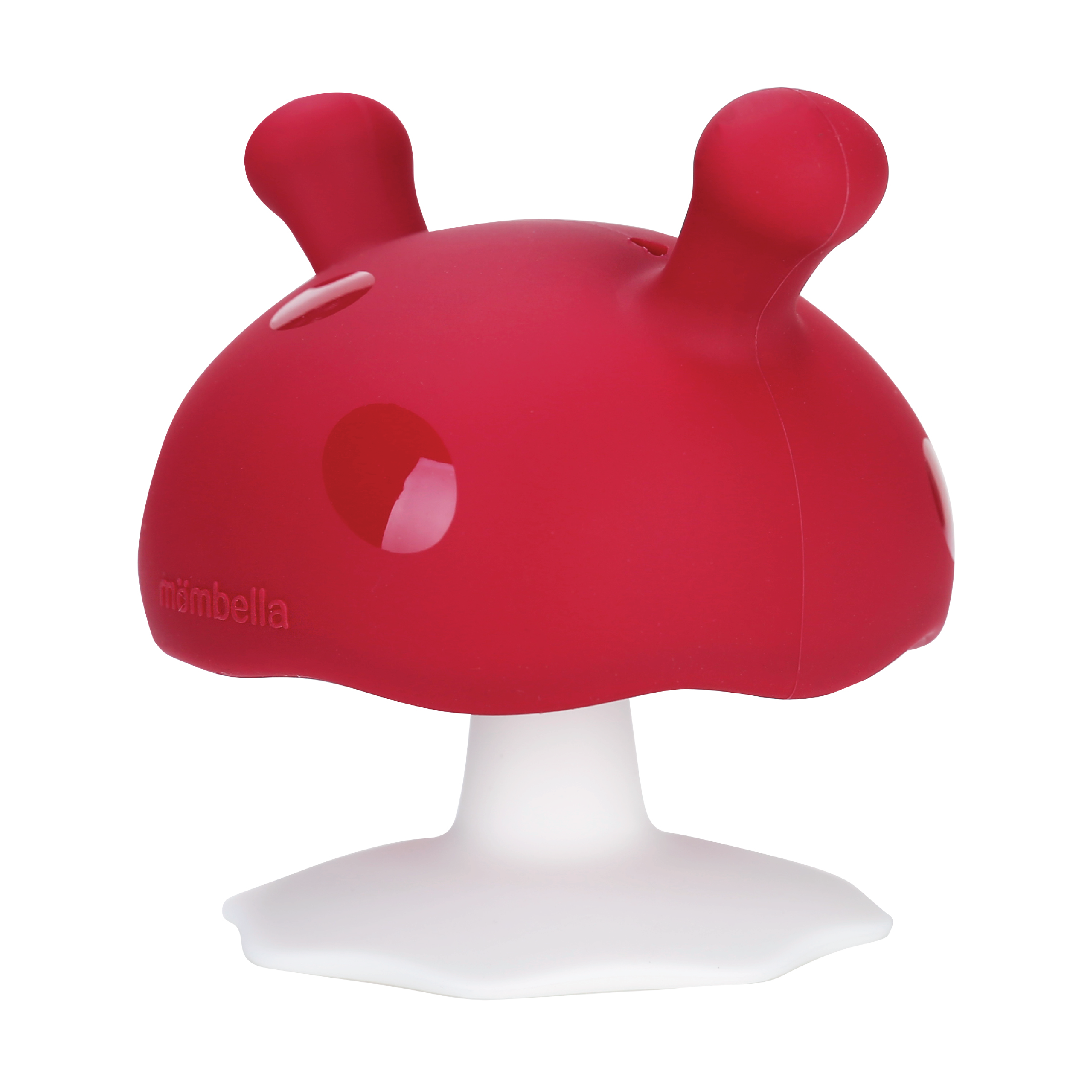 Mombella Mushroom er designet som babyens første leketøy og veier kun 25 g, noe som gjør den lett for små hender å holde. Biteleken er formet for å gi en følelse av trøst, samtidig som den masserer tannkjøttet og bidrar til å tilfredsstille babyens naturlige behov for å bite og suge. Formen gjør det enkelt for babyen å holde den selv og kan bidra til å redusere behovet for å tygge eller suge på fingrene. Den kan også brukes som en liten snacks kopp og festes til glatte overflater slik at babyen kan dra i den, noe som bidrar til å styrke små håndmuskler. Den myke silikonen er skånsom mot ømfintlig tannkjøtt, og materialet er laget av 100 % matgradert BPA-fri silikon.
