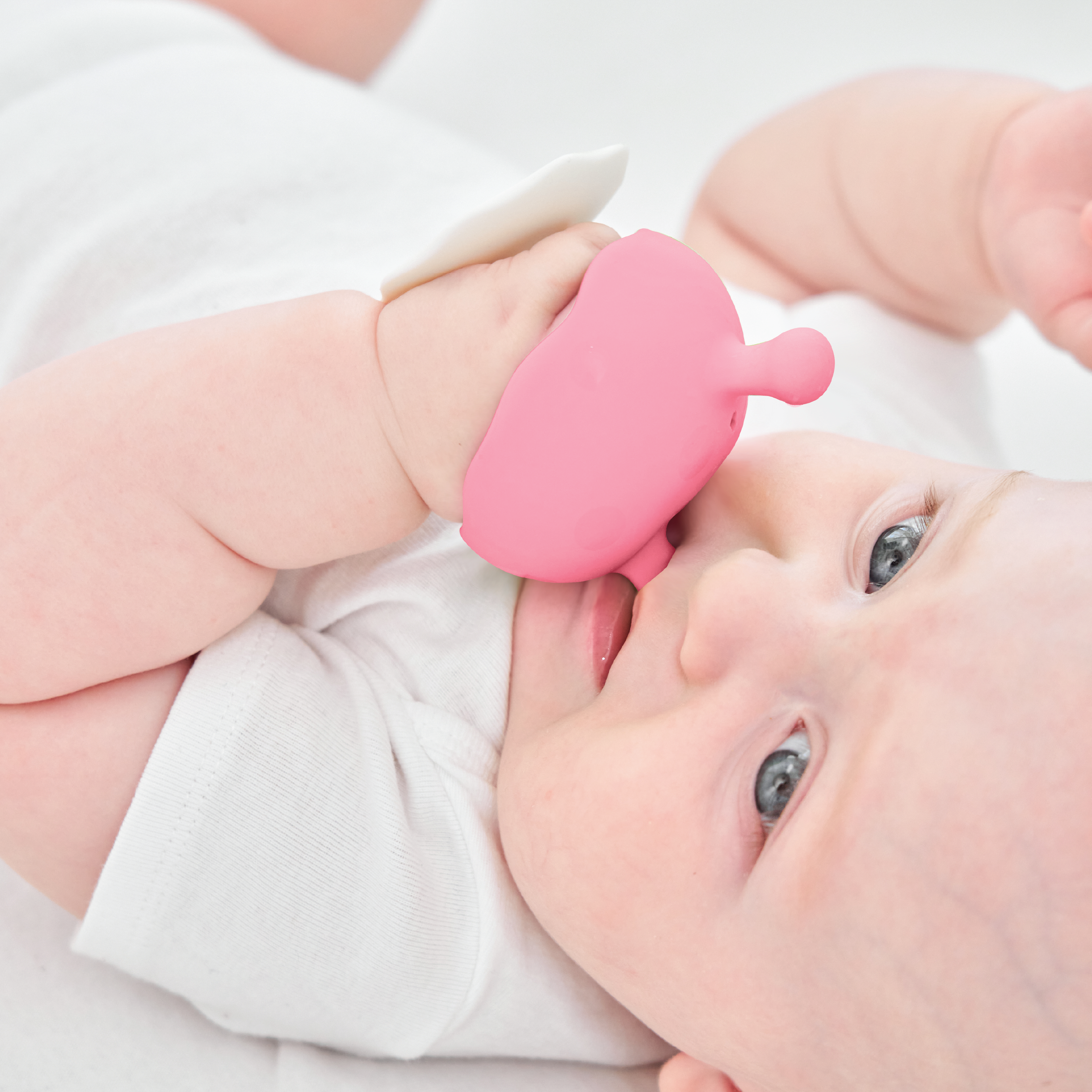 - Biteleke som bidrar til å lindre tannkjøtt og dekke suge- og bitebehov.