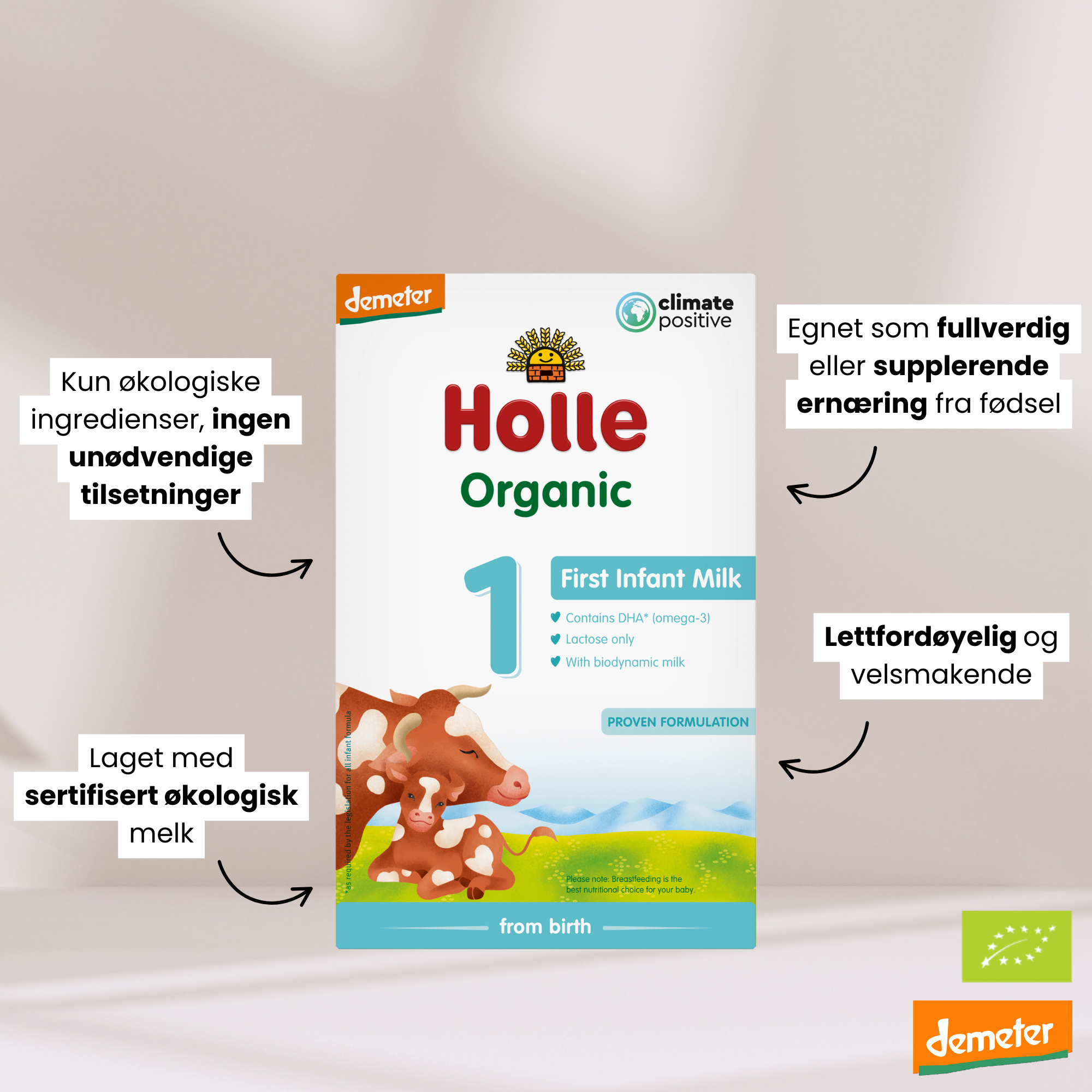 Holle Morsmelkerstatning Kumelk Nr. 1 er en melkebasert erstatning til spedbarn med behov for tilskudd eller som erstatning for morsmelk.