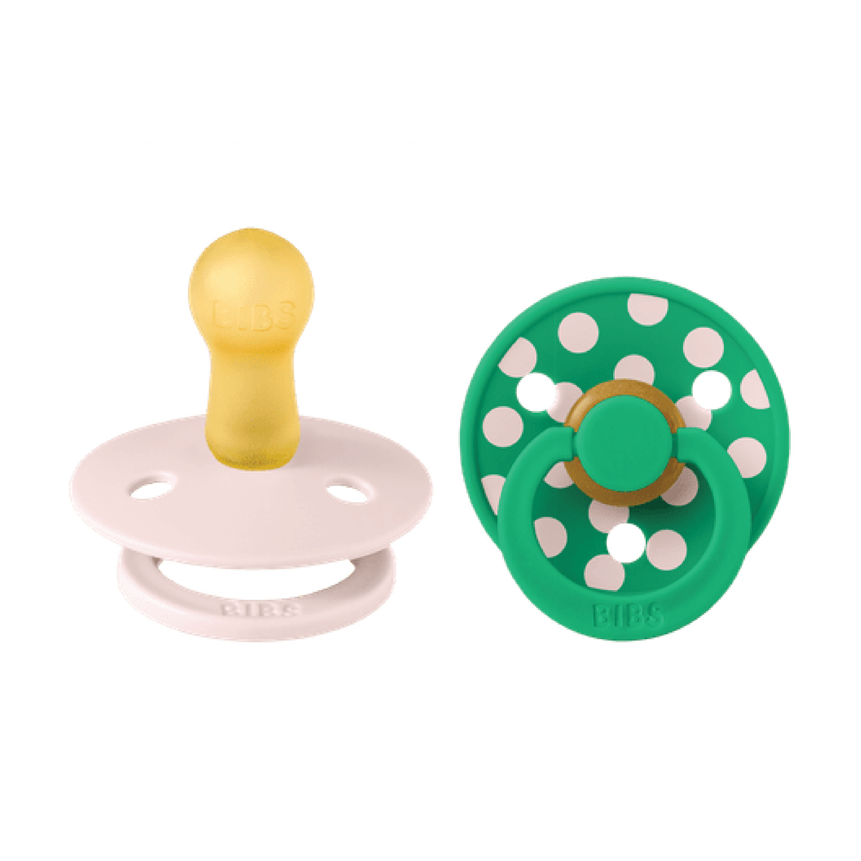 BIBS Studio Colour Polka Latex Smokk Str. 2 er smokker med BIBS sitt klassiske runde skjold, med en rund sugedel laget av myk naturgummi.