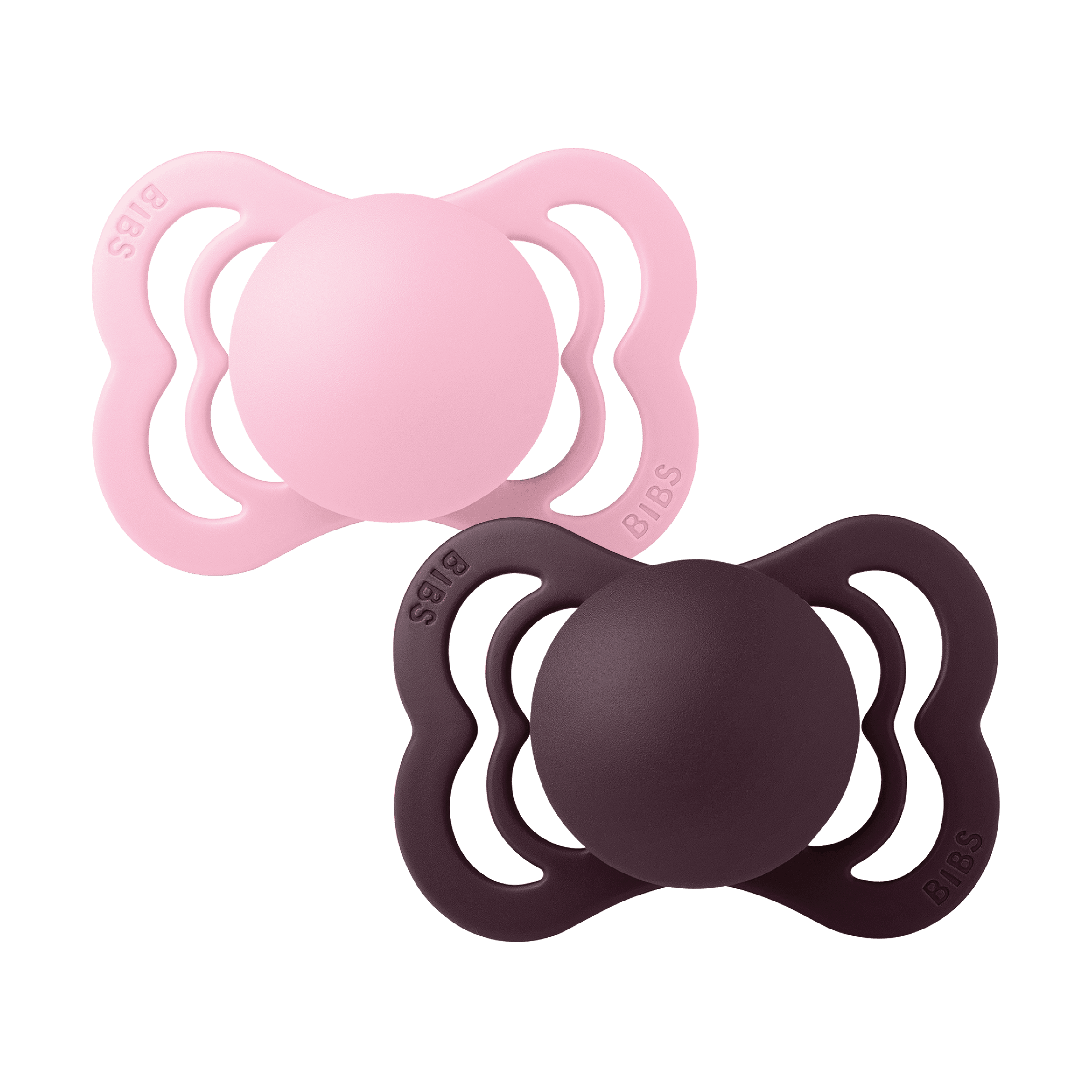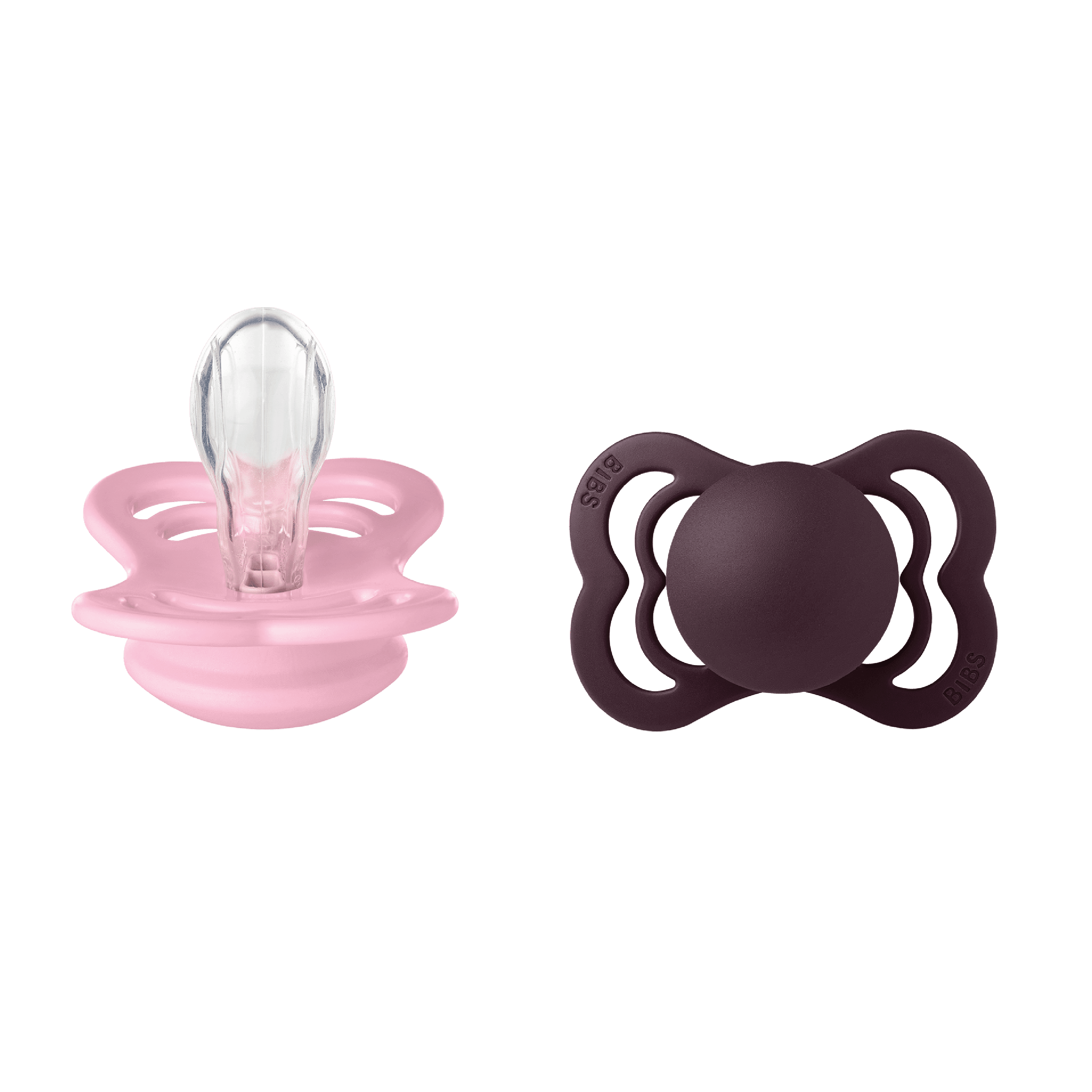 BIBS Supreme Silicone Smokk Str. 1 er smokker med et bredt skjold og ventilasjonshull, med en flat, dråpeformet og symmetrisk sugedel laget av silikon.